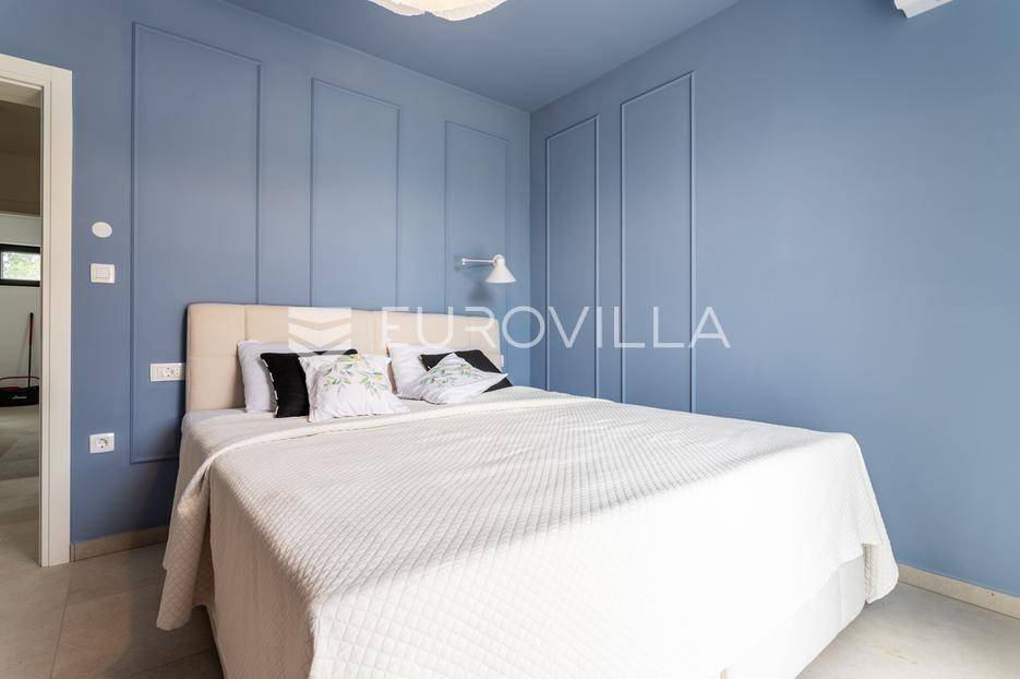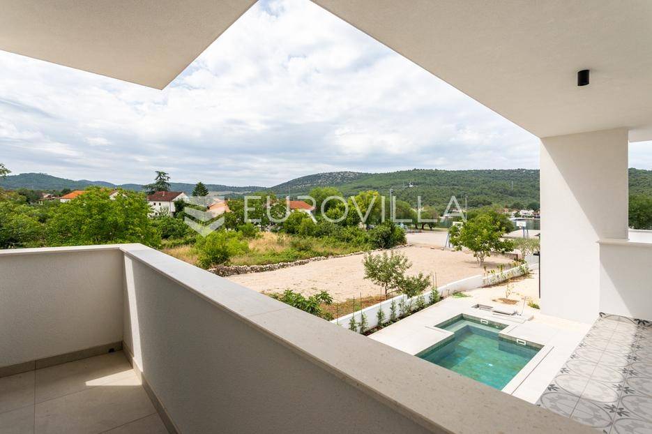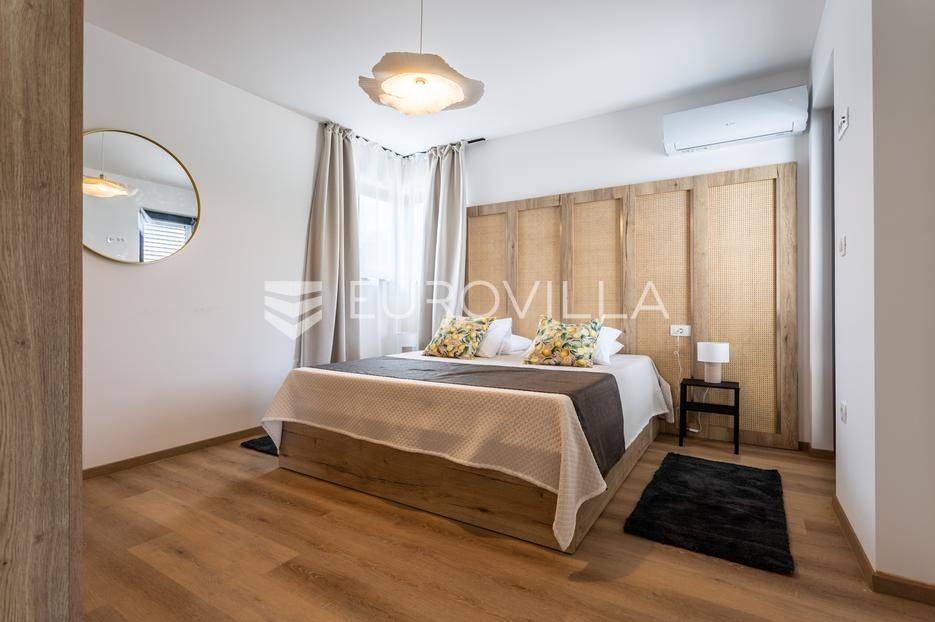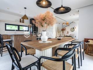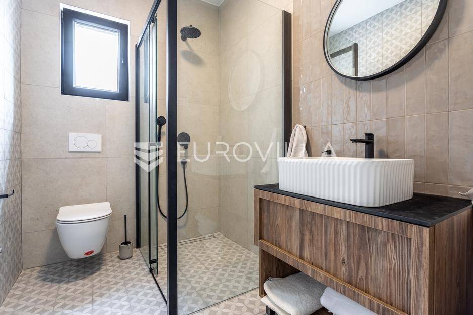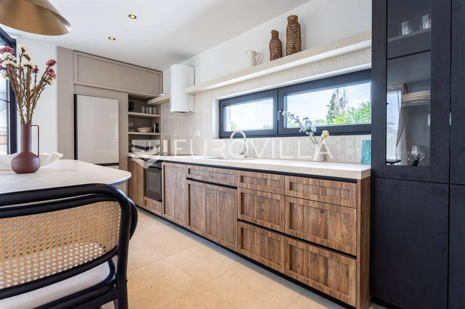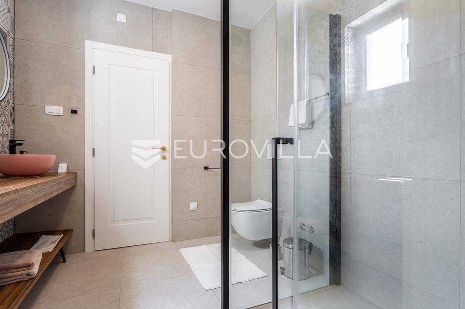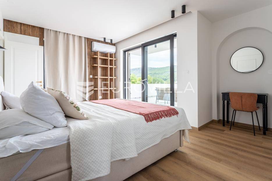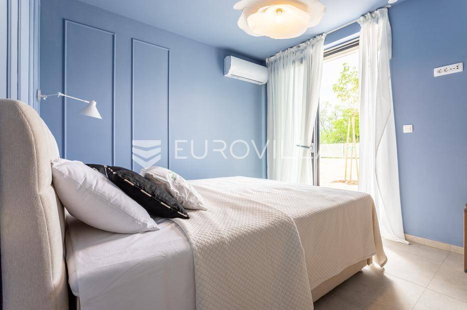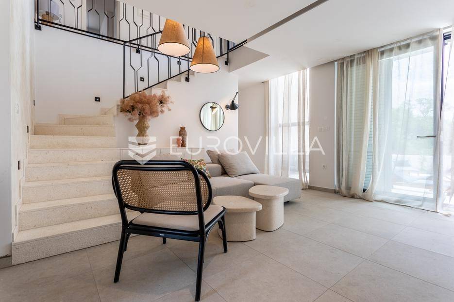 Novoizgrađena vila s bazenom u neposrednoj blizini mora bruto površine 283 m2 na zemljištu površine 1039 m2. Sastoji se od dvije etaže i prostrane okućnice. Na prizemnoj etaži se nalazi kuhinja, blagovaona, dnevni boravak, spremište/tehnička soba, kupaonica te jedna spavaća soba. Na prvoj etaži se nalaze tri spavaće sobe. Master soba posjeduje walk in ormar, kupaonicu te vlastitu prostranu terasu, preostale dvije spavaće sobe dijele zajedničku kupaonicu te svaka od soba ima vlastitu lođu. U dvorištu vile se nalazi natkrivena ljetna kuhinja s kominom, bazen, sunčalište, uređena okućnica te natkriveni i nenatkriveni parking za automobile.Grijanje i hlađenje riješeno putem šest klima jedinica, podnim grijanjem te su postavljeni solarni sistemi.Vila se prodaje u potpunosti namještena, pomno odabranim namještajem od strane dizajnera interijera. Nalazi se prvi red do mora, na samo 20 m od plaže, u blizini svih bitnih sadržaja. Navedeno je čini idealnom za ugodan život ali i za investiciju u svrhe turističkog poslovanja.Više informacija na upit.