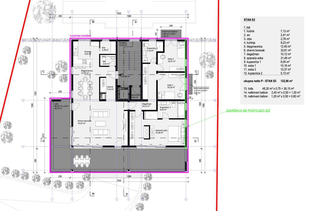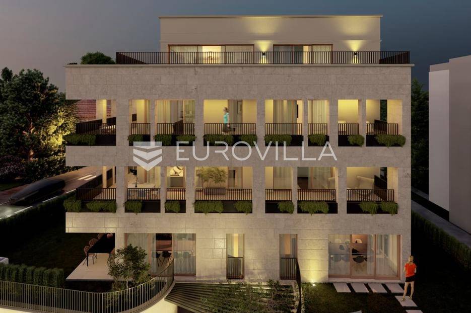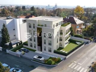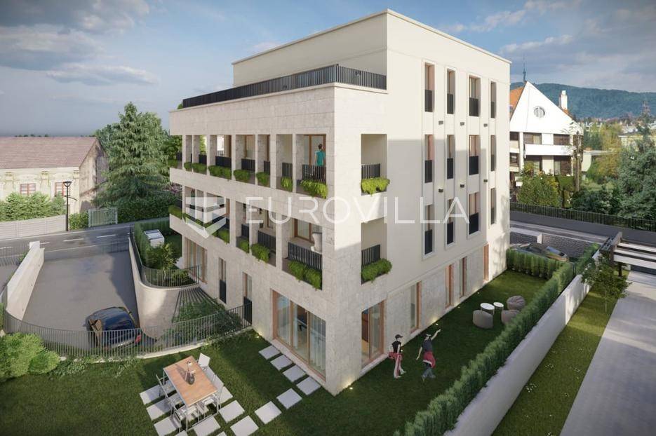 Na jednoj od najprestižnijih mikrolokacija Zagreba - Tuškancu, nasuprot parka i u neposrednoj blizini škole, javnog prijevoza i svih sadržaja, prodaje se vrhunski četverosobni stan u luksuznoj novogradnji.Stan se nalazi na 2. katu moderne zgrade s ukupno 5 stanova, liftom, podzemnom garažom i visokom razinom privatnosti i komfora.Osnovne informacije:zatvorena površina stana: 132,90 m²loggia: 48,20 m² (obračunski 36,15 m²)balkon: 3,60 m² (obračunski 1,80 m²)garažno parkirno mjesto: 13,00 m² (obračunski 6,50 m²)vanjsko parkirno mjesto: 12,50 m² (obračunski 2,50 m²)ostava: 4,73 m² (obračunski 2,37 m²)ukupna obračunska neto korisna površina (NKP): 180,42 m²Stan je orijentiran na sve četiri strane svijeta te pruža obilje prirodne svjetlosti i prekrasan pogled na zelenilo.Tehnički standardi i oprema:visina stropa 2,90 msmart home sustavfasada STO, dio u kamenualu stolarija s troslojnim izo-staklima i otvorima od poda do stropaelektrične rolete i žaluzinealarmni sustav i videonadzorlift s direktnim pristupom stanudizalica topline, podno grijanje i kanalno hlađenjeelektromagnetska zaštita od vanjskog i unutarnjeg zračenjakamen u stubištukeramika, parketi i sanitarna oprema 1. klase - prema želji kupcaPlanirano useljenje: Prosinac 2027. godine.Ova nekretnina predstavlja iznimnu priliku za kupce koji traže spoj vrhunske lokacije, moderne gradnje i mogućnosti personalizacije interijera prema vlastitim željama.Za više informacija slobodno nas kontaktirajte.