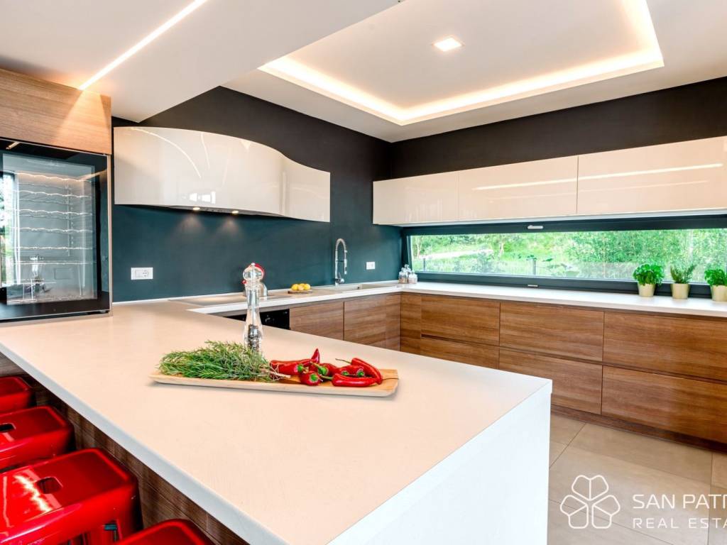 Auf einem Grundstück von 650 m2 steht eine Designer-Villa mit einer Gesamtfläche von 370 m2, die sich über drei Etagen (Keller, Erdgeschoss und Obergeschoss) erstreckt und 4 Schlafzimmer, Ankleideräume, 3 Badezimmer, 4 Terrassen, 2 Küchen, einen privaten Außenpool, ein großes Wohn- und Esszimmer mit Kamin, eine Taverne, ein Arbeitszimmer, einen üppigen Garten mit automatischem Bewässerungssystem und 3 Parkplätze umfasst.