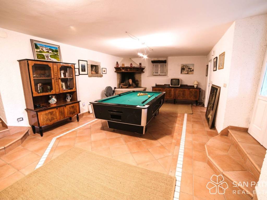 Various recreational amenities: billiard table with fireplace, table tennis, trampoline, bocce court, volleyball court, and cycling trails within the estate.