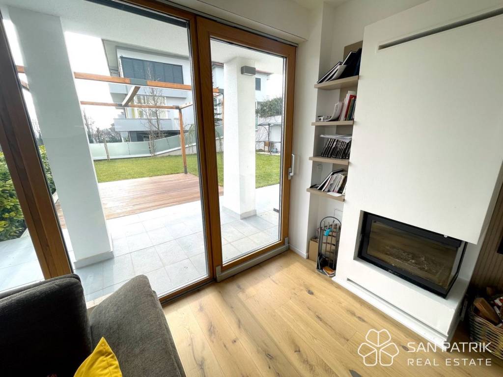 The apartment is located on the ground floor of an exclusive residential building that has only four units, ensuring intimacy and privacy. Energy-certified with an A rating, the building represents the pinnacle of modern living with an emphasis on energy efficiency and ecological sustainability.