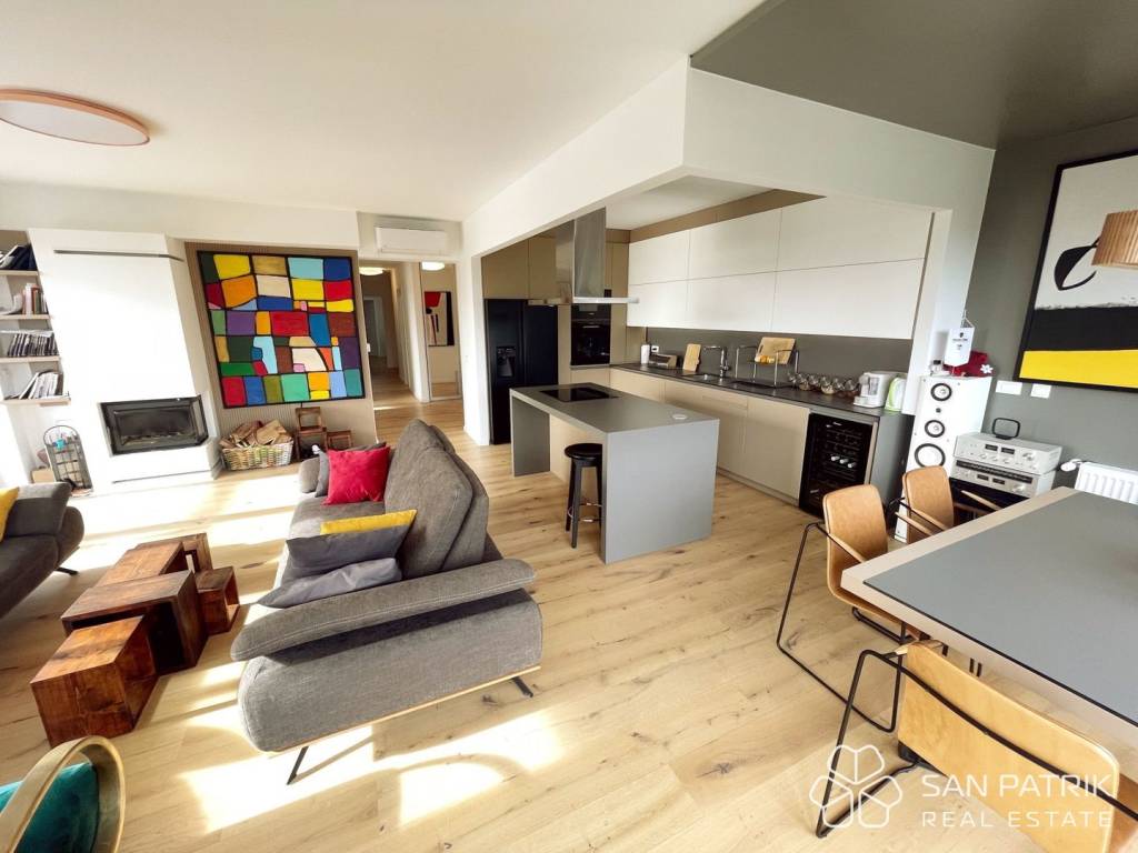 Comfort throughout the year is ensured by an underfloor heating system via a heat pump and a fireplace in the living room for a warmer atmosphere in winter, while air conditioners keep the space comfortable in summer.