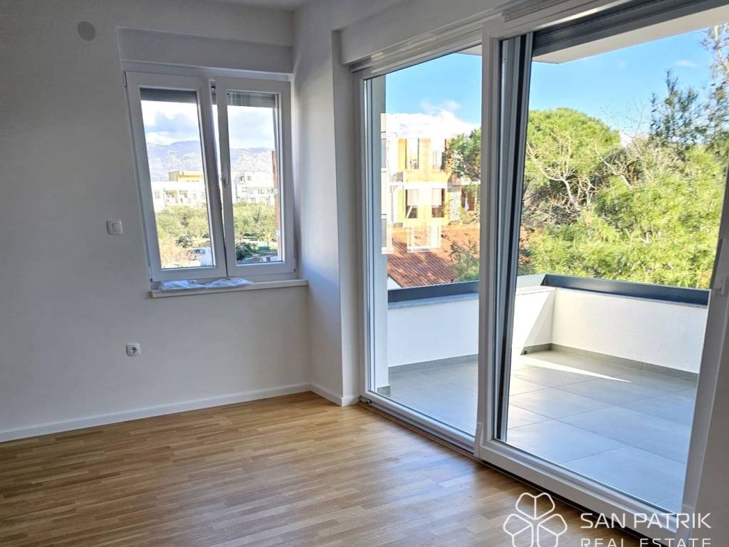 The building stands out with its high-quality construction and offers additional luxury in the form of a shared pool located on the ground floor, providing extra comfort for all residents. The ground-floor units have their own garden and terrace, while the apartments on the first and second floors feature spacious covered balconies – perfect for enjoying the surrounding beauty. The apartment is equipped with three air conditioning units, one in each room, ensuring optimal comfort throughout the year.
