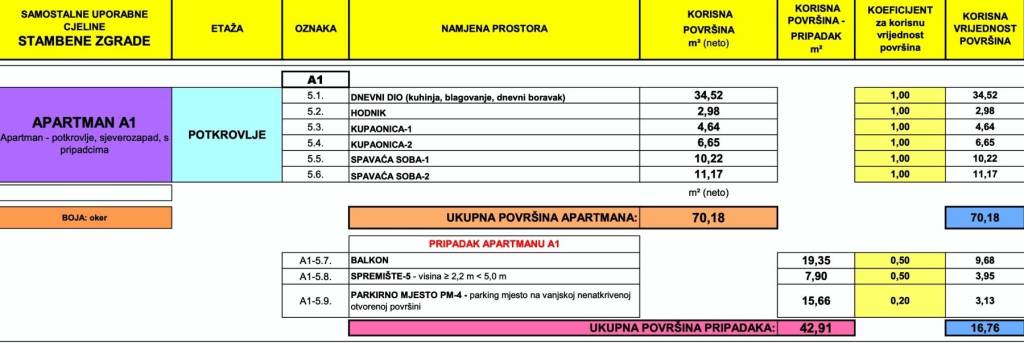 Apartment BA1 - 2nd floor - living area 70.18 m² (2 bedrooms + 2 bathrooms) + balcony (19 m² - NW) + storage room (8 m²) + outdoor parking space PM4, total net area 86.94 m² + rooftop terrace = €360,000