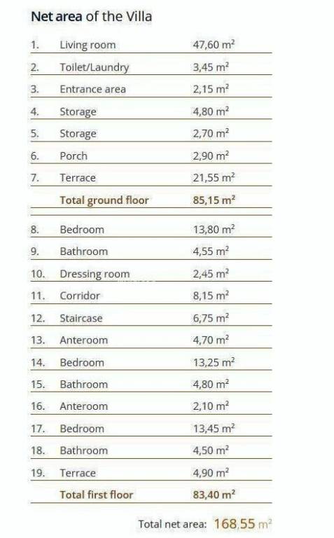 The house is built as a high-quality new construction. All floors are covered with ceramic tiles, and underfloor heating is installed throughout the entire property. Air conditioning units for heating and cooling are installed in the living room and in each bedroom. The windows are aluminum (Cortizo) with insect screens, and the house is also equipped with an external video surveillance system. The pool has a heating option and is already in use. The property is fully move-in ready and prepared for its new owner.