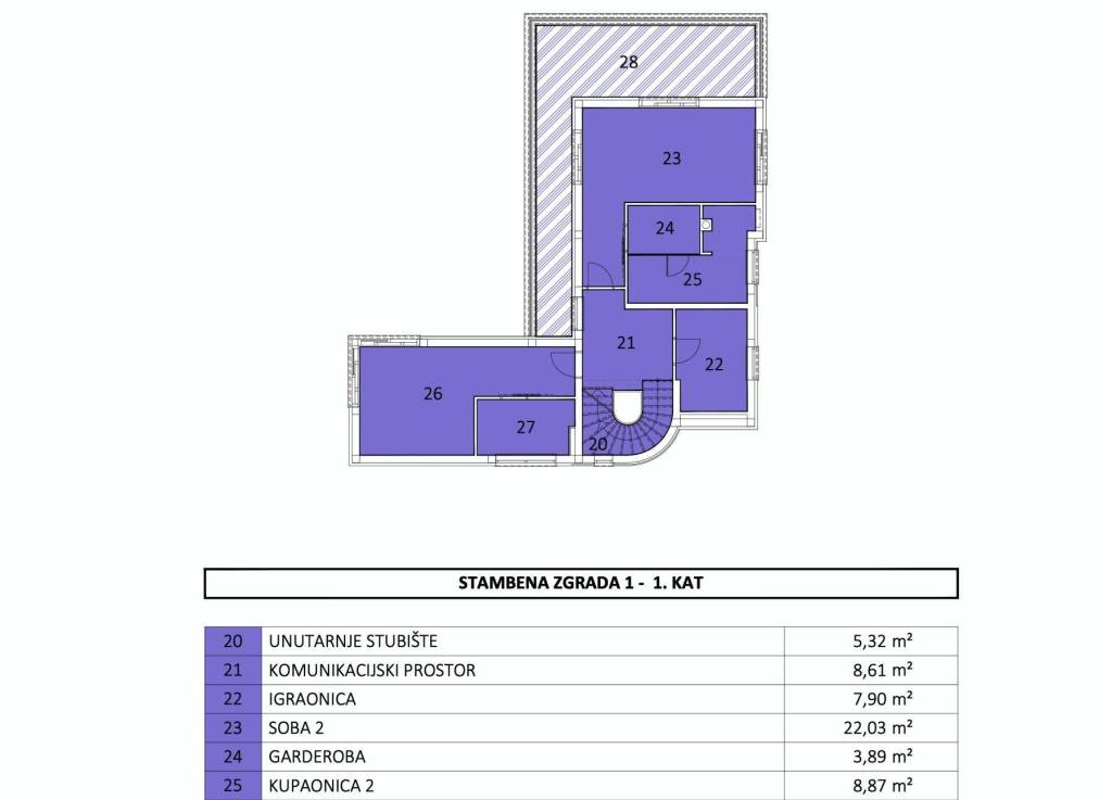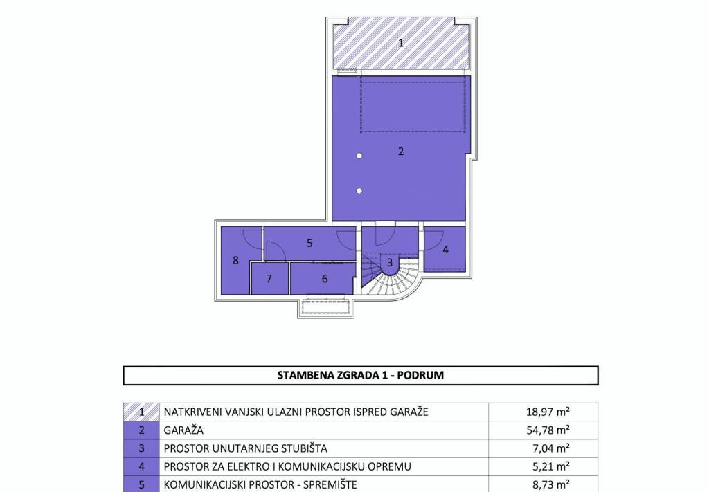 Villa Paklenica1 – basement + ground floor + 1st floor + 2nd floor – living area 260 m² (4 bedrooms + 4 bathrooms) + 3 terraces + 28 m² pool with sun deck + garden + garage for 2 cars, total net usable area 342 m² on a plot of 470 m² = €2,000,000 (VAT included)