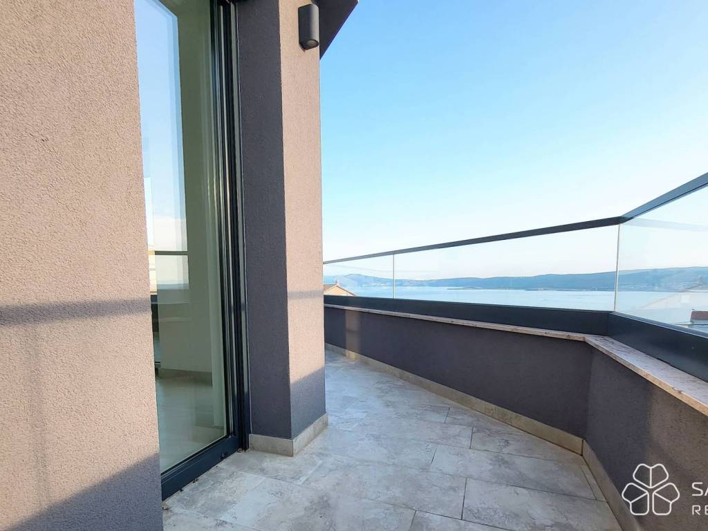 The apartment has a total area of 70 m² and includes a private parking space. It consists of two bedrooms, a bathroom and toilet, a storage room and a spacious living room with a kitchen and dining area in an open floor plan. The living area opens onto a large loggia with an open view of the sea. It is equipped with high-quality and modern equipment: underfloor heating in all rooms, air conditioning, electric shutters, mosquito nets, video intercom and security doors ensure a high level of comfort and security. The apartment is unfurnished, which allows the future owner to decorate it according to their own wishes.