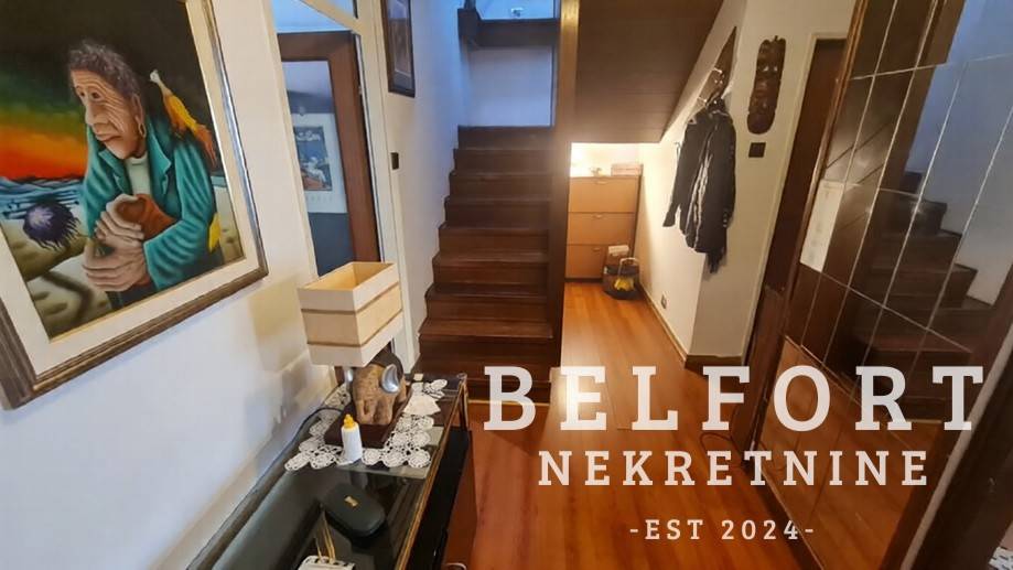 Stan se proteže na dvije etaže (prvi kat i potkrovlje) i ima 4 spavaće sobe u kući u nizu izgrađenoj 1988. godine.