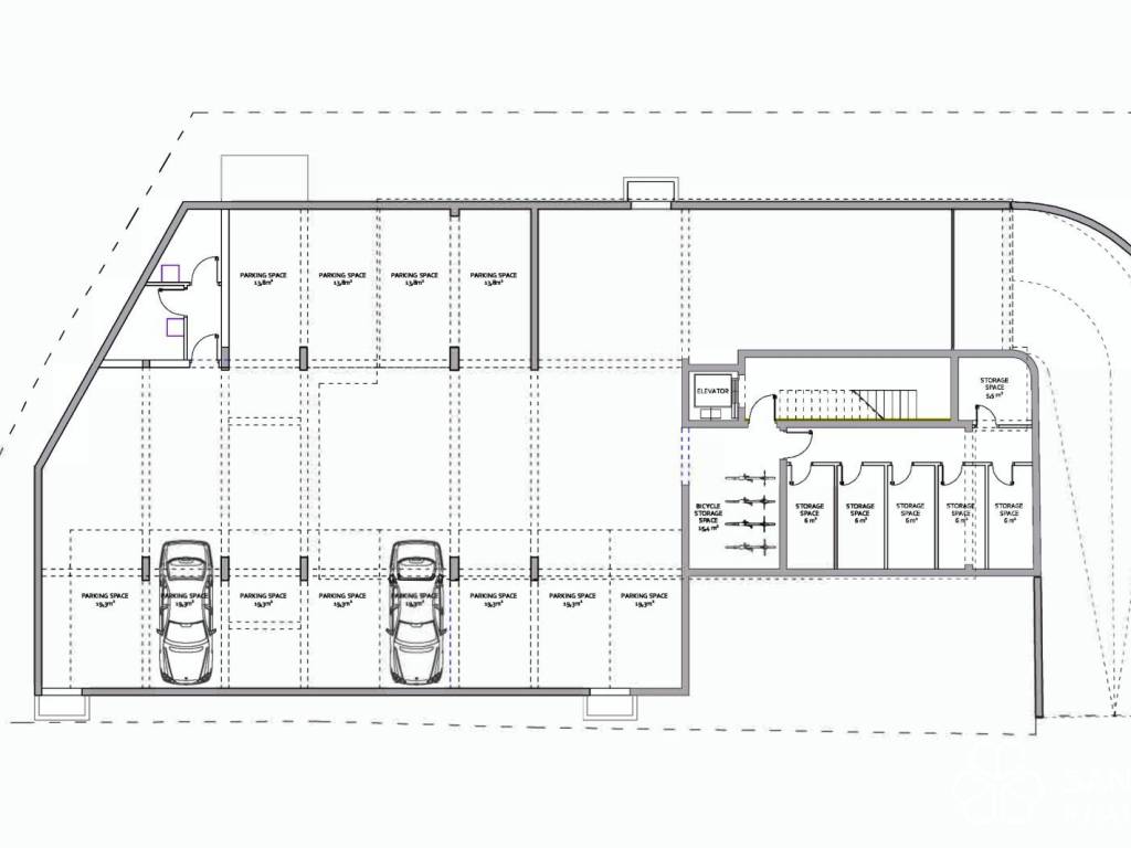 Apartment S-6 – 2nd floor – living area 82.53 m² (2 bedrooms + 2 bathrooms + WC) + loggia (24 m²) + rooftop terrace (119 m²) + storage (7.34 m²) + two garage parking spaces no. 1 and 2; total net floor area 181.38 m² = 1,561,652.50 EUR