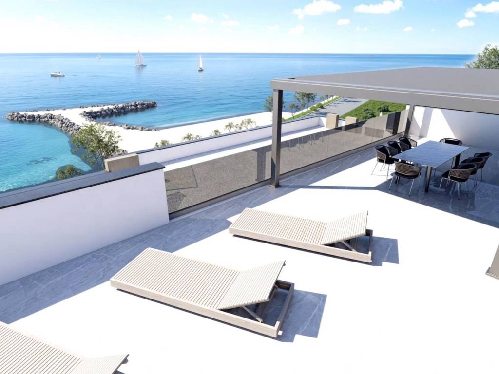 The ground floor residences offer spacious interiors with private Mediterranean gardens, swimming pools and open sea views. They range from two hundred twenty three to two hundred twenty nine square meters, with three bedrooms and three bathrooms. On the first floor, the elegant Sunset Apartments feature two bedrooms, one bathroom and an additional guest toilet, with sizes from ninety to one hundred two square meters and panoramic terraces overlooking the Adriatic. The penthouse residences on the second floor span from two hundred eight to two hundred twenty five square meters with three bedrooms and four bathrooms, opening to private rooftop terraces of one hundred nineteen square meters. Each rooftop offers a jacuzzi, outdoor kitchen, lounge and dining areas under a bioclimatic pergola, creating a private sanctuary with breathtaking views of the sea and the Velebit mountains.