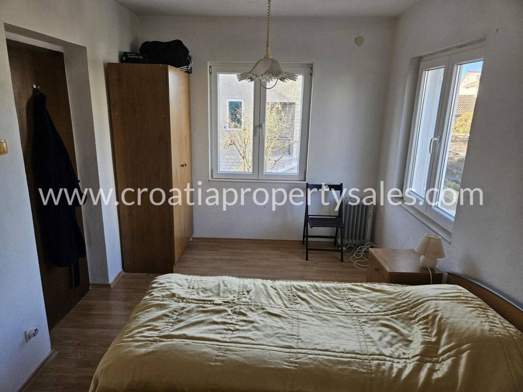 Ein schönes, gemütliches Haus auf der Insel Čiovo in ruhiger, grüner Lage an.Abseits vom Trubel gelegen, ist es der ideale Ort für alle, die Ruhe und Erholung suchen.Das Haus erstreckt sich über zwei Etagen und bietet insgesamt ca. 120 m2 Wohnfläche – weder zu groß noch zu klein. Es verfügt über einen schönen Außenbereich im Garten und einen überdachten Grillplatz direkt vor dem Eingang.Im Erdgeschoss befinden sich das erste Badezimmer mit Dusche, eine vom Wohnbereich abgetrennte Küche mit direktem Zugang zum Garten sowie ein kleines Nebengebäude mit Waschküche, Waschmaschine und Trockner und einer zusätzlichen Duschkabine.Auf der Galerie befindet sich das geräumige erste Schlafzimmer, während die beiden anderen Schlafzimmer im ersten Stock nebeneinander liegen. Die weiteren Schlafzimmer sind ähnlich groß, eines davon hat Zugang zu einem Balkon auf der Südseite.Im ersten Stock befindet sich außerdem ein weiteres Badezimmer mit Badewanne. Es gibt ein weiteres Zwischengeschoss mit einem Balkon, der sogar einen teilweisen Meerblick bietet, und einem Abstellraum mit Dachschräge, der beispielsweise in ein weiteres Zimmer umgewandelt werden kann.Obwohl das Haus Ende der 1980er Jahre erbaut wurde, ist es noch in gutem Zustand und kann wie beschrieben genutzt werden. Um das volle Potenzial auszuschöpfen, wären jedoch einige Modernisierungsarbeiten nötig.Es verfügt über zwei Parkplätze: einen im Freien und einen weiteren in einer geräumigen Garage mit 20 m2. Dieses Anwesen eignet sich hervorragend für alle, die Ruhe und Entspannung suchen.Das Haus liegt relativ nah am Meer und einem nahegelegenen Strand, der nächste Supermarkt ist nur wenige Autominuten entfernt.