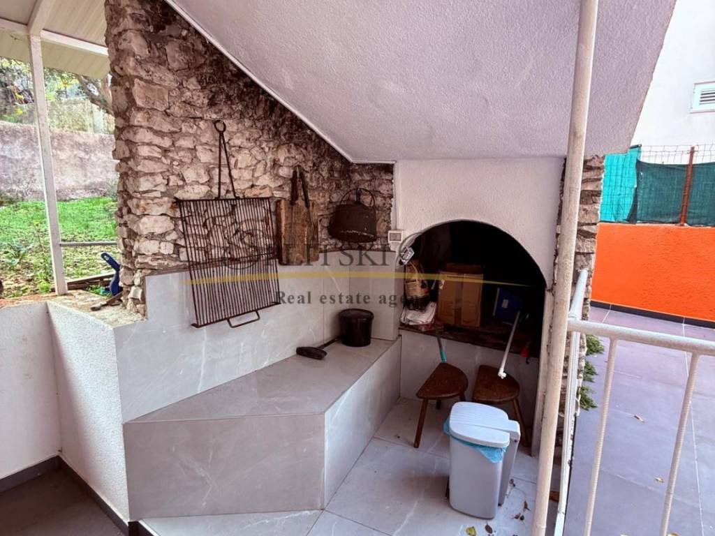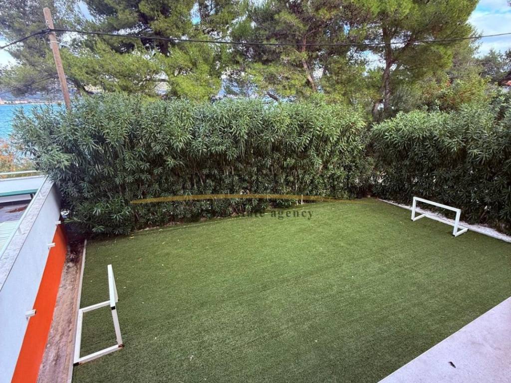 U mirnoj okolici Trogira, svega minutu hoda od mora, smještena je kompletno opremljena kuća s pet apartmana, idealna za turistički najam ili miran obiteljski život uz more. Objekt se nalazi na parceli od 577 m i nudi izniman potencijal, uključujući mogućnost nadogradnje još jednog kata. U prizemlju su smještena tri apartmana, dok se na katu nalaze još dva, a svaki ima izlaz na verandu s prekrasnim pogledom na more. Kuća raspolaže garažom za jedno vozilo uz dodatnu mogućnost parkiranja oko kuće, vanjskim tušem, kaminom te lijepo uređenim kaskadnim vrtom. Prostrana okućnica s travnatom površinom omogućuje jednostavnu izgradnju bazena i dodatnih sadržaja za potpuni mediteranski ugođaj. Lokacija nudi savršenu ravnotežu između mira i dostupnosti sadržaja, s autobusnom stanicom udaljenom svega 20 metara, lučicom za brodove na 50 metara, restoranom na 100 metara i trgovinom na 150 metara. Centar Trogira udaljen je samo 3 kilometra, što ovu nekretninu čini izvrsnim izborom za ugodan boravak i investiciju.