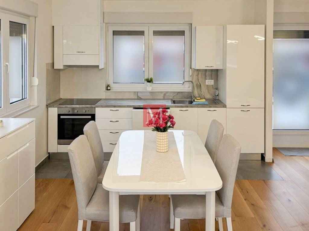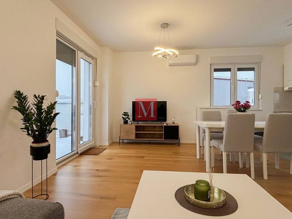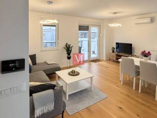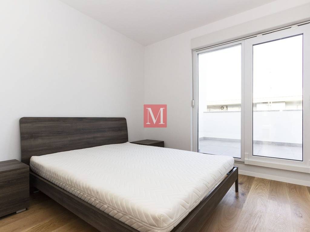 Excellent, brand new 2 bedroom penthouse of 91 m2 on the 3rd floor of a new building in Podbrežje Street. The apartment consists of a hallway, a kitchen with a dining room and a living room with access to two beautiful terraces, two bedrooms, a bathroom, a separate toilet and a balcony. The apartment is fully furnished and has security doors, an air conditioning unit, underfloor heating in all rooms, and is equipped with all household appliances. The apartment has one parking space in the parking lot in front of the building. Excellent connection with all parts of the city. Excellent location - in the immediate vicinity of the apartment there are all the necessary amenities. Smoking and pets are not allowed in the apartment. Mandatory deposit in the amount of one month's rent. Agency commission: 1 month rent+VAT.