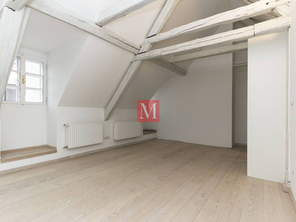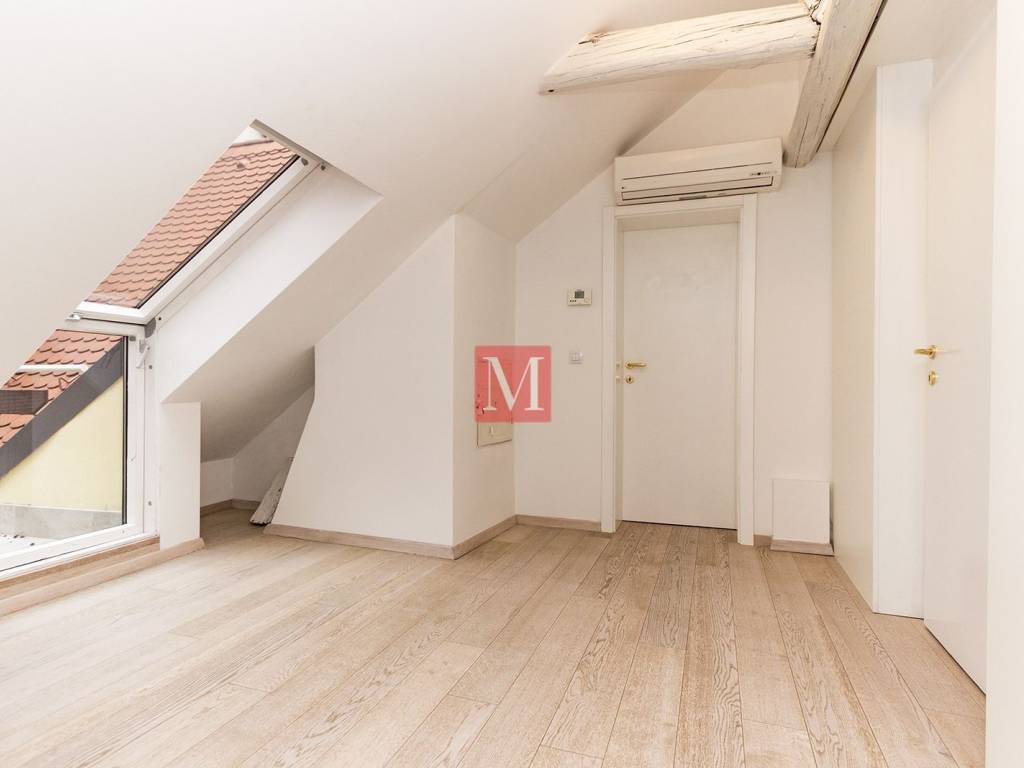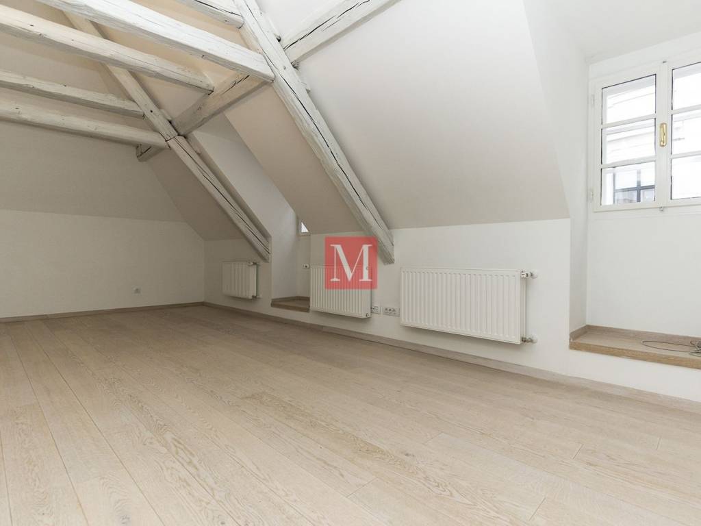 Charming apartment of 100m2 in the heart of Gornji Grad. The apartment is located in the attic of a multi-storey building and consists of 4 rooms - 2 are used as bedrooms, one as a children's playroom, and a study, bathroom, exit to a small roof terrace, laundry room, storage room. Entrance on the ground floor with stairs. Due to its location, the apartment is a 10-minute easy walk to the main square, Ilica and all the amenities offered by the city center. Parking on the street with a special ticket for Gornji grad. Long-term lease with a mandatory deposit. Agency commission: 1 month rent + VAT.