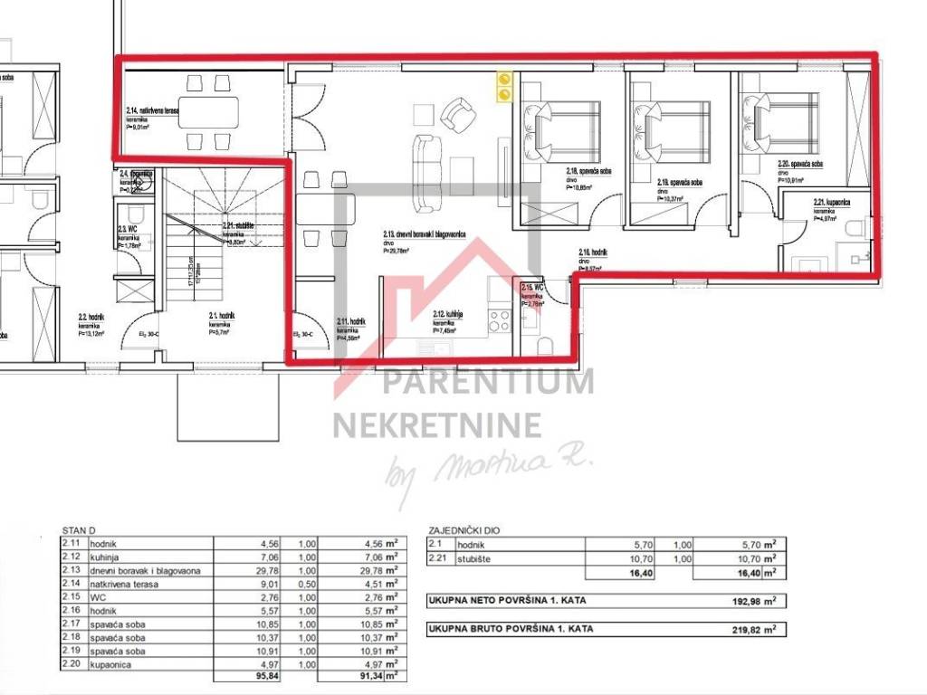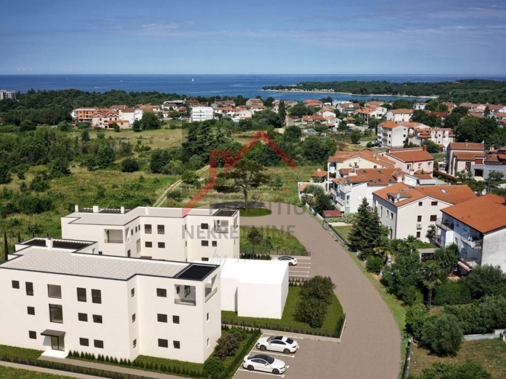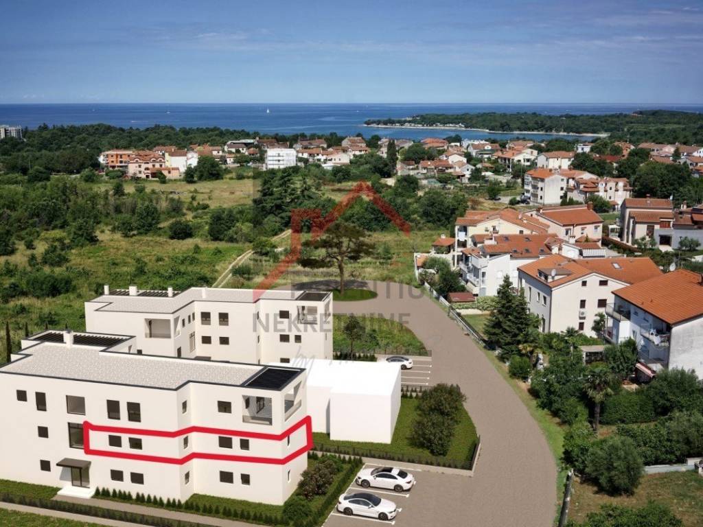 Istrien, Poreč Luxuswohnung im ersten Stock in Poreč. Eine wunderschöne Wohnung in einem neuen Wohngebäude mit fünf Luxuswohnungen steht zum Verkauf. Die Lage am Rande des Stadtgebiets bietet zusätzliche Privatsphäre. Die 96 m (netto 91,34 m) große Wohnung besteht aus einem geräumigen Wohnzimmer mit Küche und Esszimmer, drei Schlafzimmern, einem Badezimmer, einem WC und einer großen, überdachten Terrasse von 9 m.