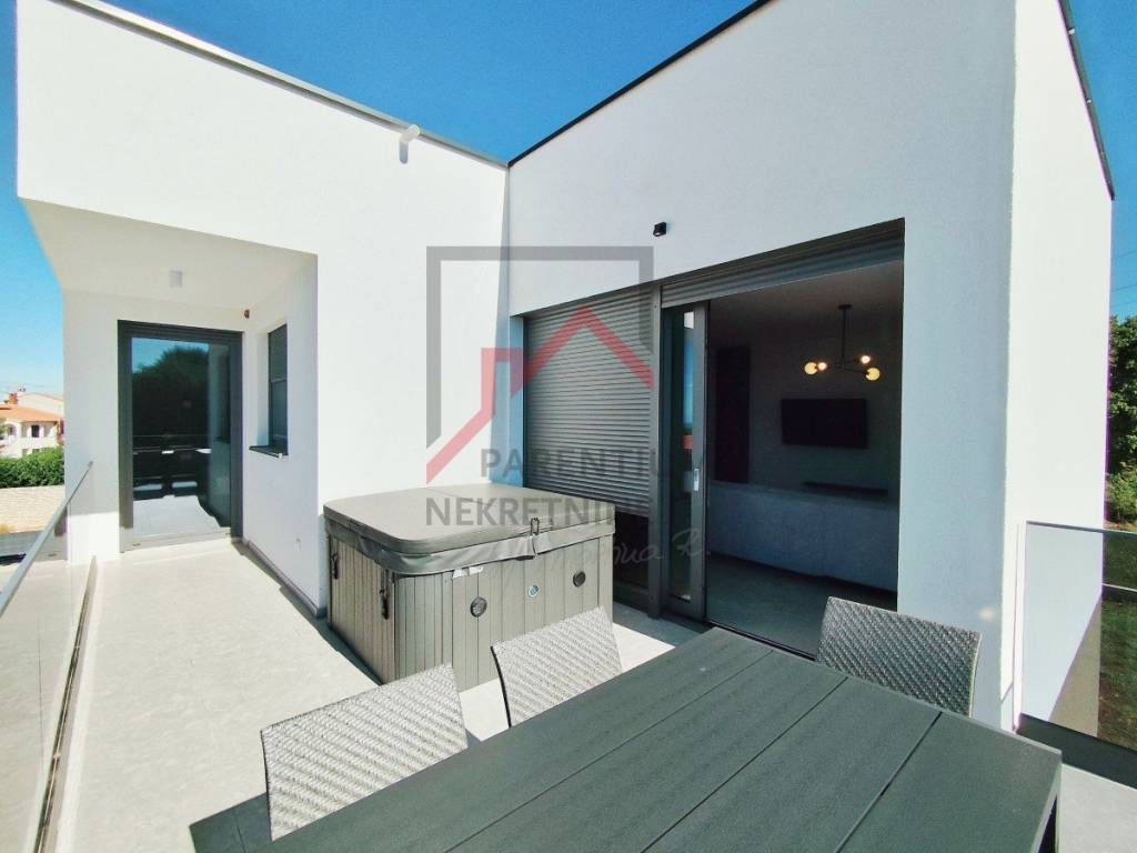 In ruhiger Lage, nur wenige Autominuten von Poreč entfernt, befindet sich eine moderne Wohnung, die den Komfort eines Zuhauses mit der Ästhetik zeitgenössischen Designs verbindet.