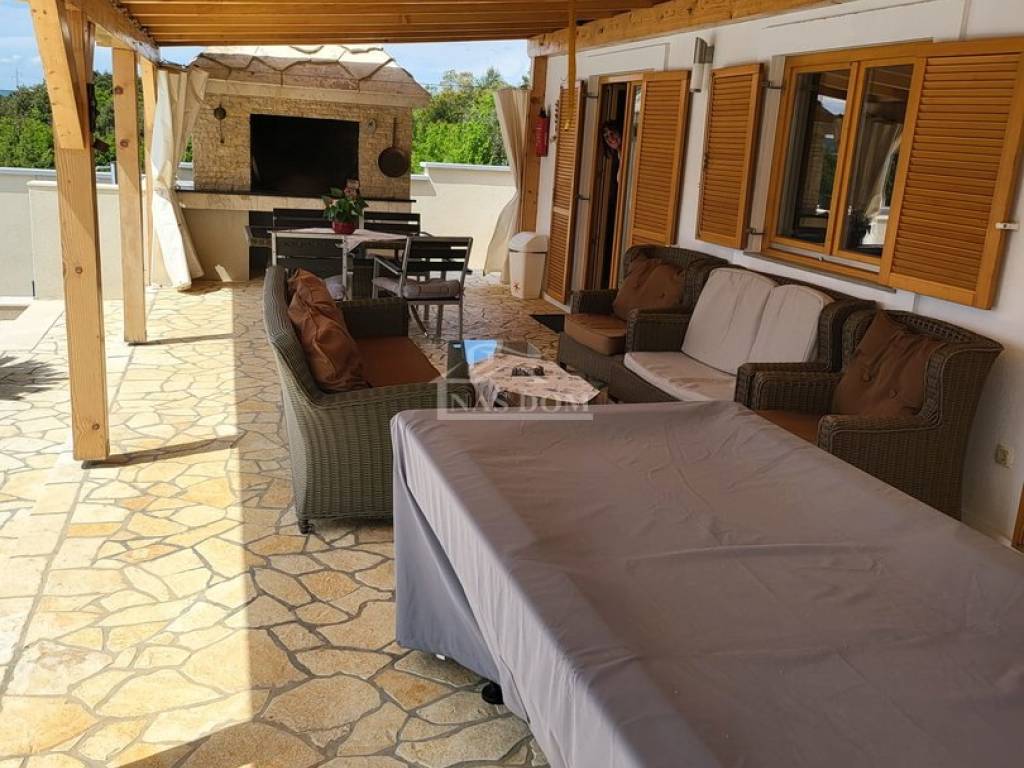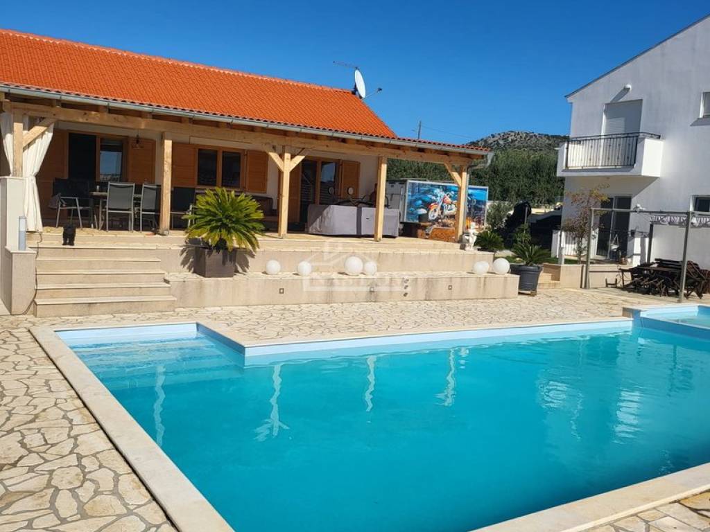 Biograd, Donja Jagodnja – zum Verkauf steht eine Villa mit Pool im Hinterland von Biograd. Das mehrstöckige Haus mit den Grundrissmaßen 10,05 m * 13,10 m2 besteht aus zwei Etagen: Erdgeschoss + Obergeschoss. Das Erdgeschoss besteht aus Eingang, Flur, Küche mit Essbereich und Wohnzimmer, Badezimmer, Schlafzimmer und Arbeitszimmer. Über eine Innentreppe gelangt man in das Obergeschoss, das aus Flur, drei Schlafzimmern und zwei Badezimmern besteht. Jedes Zimmer hat Zugang zu einem Balkon oder einer Terrasse. Auf dem Grundstück von 1011 m2 befinden sich außerdem eine Garage mit Waschküche und zwei Außen-WCs, ein überdachter Carport mit den Maßen 9 * 6 m, ein beheizter Pool mit den Maßen 11 m * 5 m mit Jacuzzi sowie ein Sommerhaus mit einer Fläche von 50 m2, das einen Keller, eine Sommerküche und einen Bereich für Geselligkeit und Unterhaltung (Billard, Tischfußball, Tisch für 12-14 Personen, Satellitenfernsehen ...) umfasst. Große Terrasse, Außen-Grill, Sauna ...