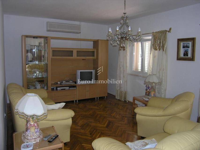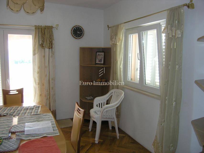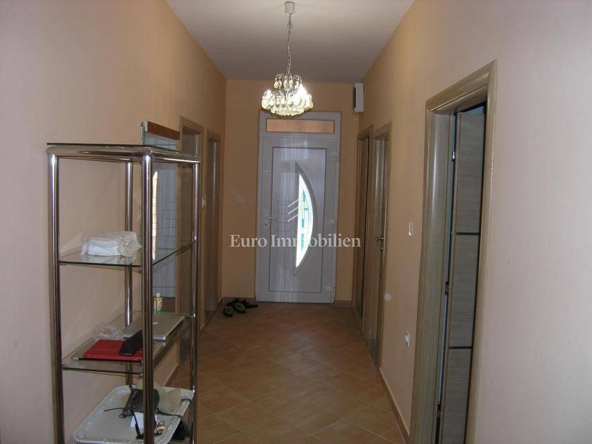In einer schönen und ruhigen Lage in Posedarje, ein Familienhaus zum Verkauf 200 m vom Meer entfernt. Das Haus hat eine Wohnfläche von 320 m2 und besteht aus Erdgeschoss und ersten Stock. Im Erdgeschoss befindet sich eine Garage, während der Rest des Erdgeschosses noch eingerichtet werden muss. Im Obergeschoss befindet sich eine Wohnung bestehend aus zwei Schlafzimmern, WC, Bad, Küche mit Essbereich und Wohnzimmer mit Ausgang zur Terrasse mit herrlichem Meerblick.