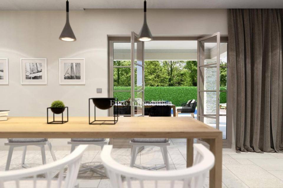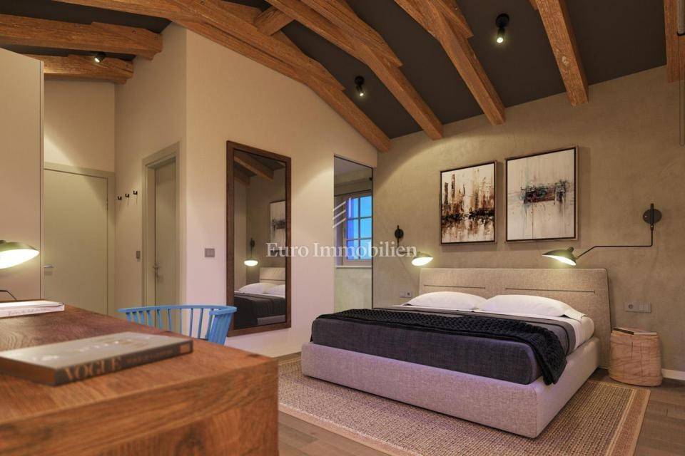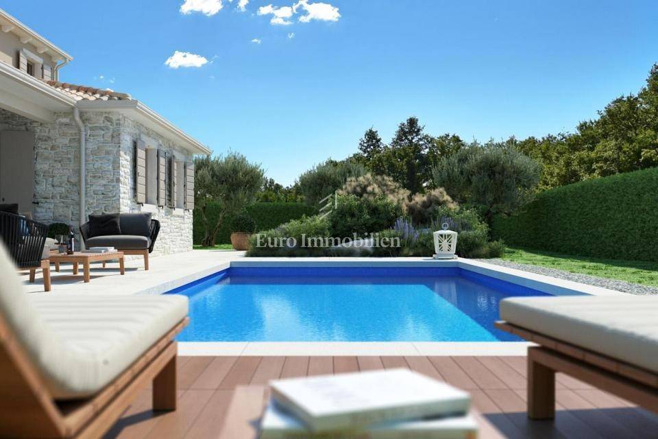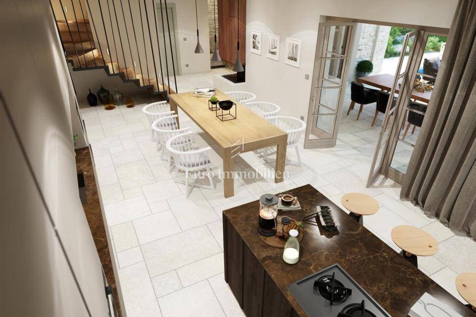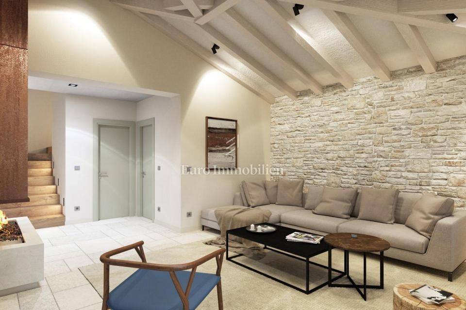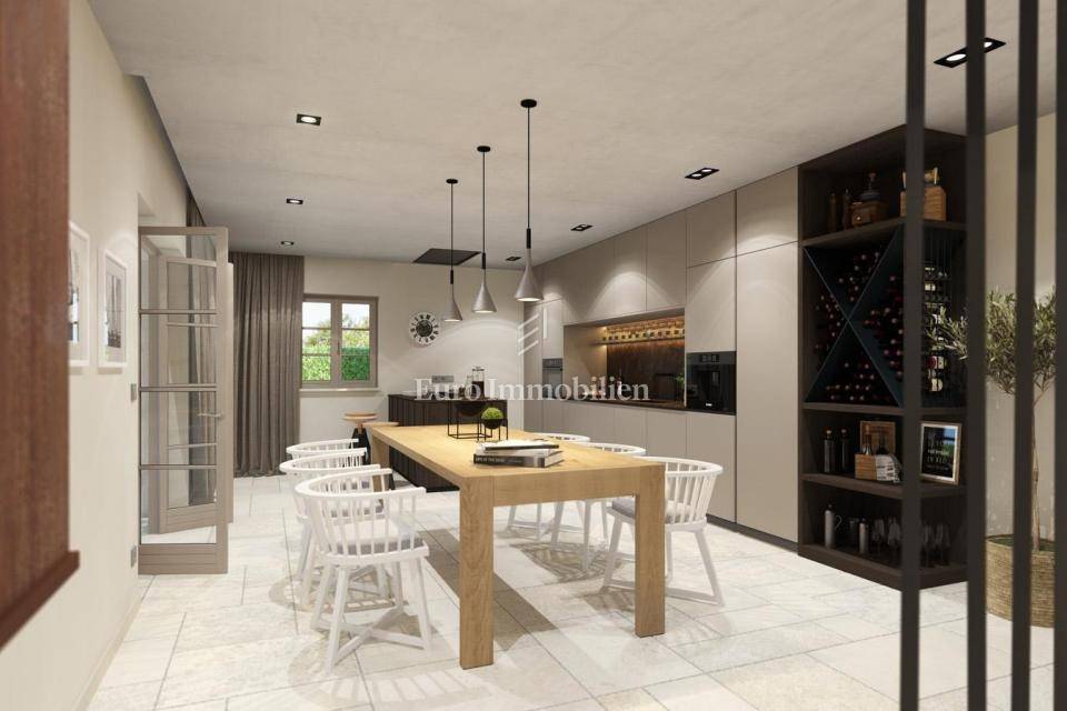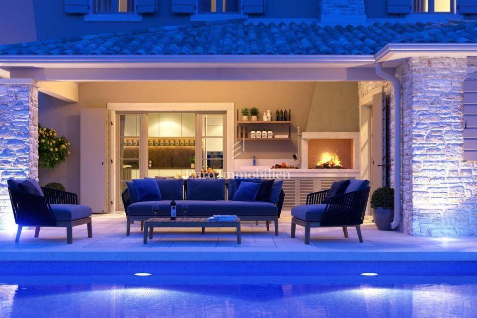 Dank seiner Lage und des eingezäunten Hofes bietet dieses luxuriöse und elegante Anwesen absolute Privatsphäre und Ruhe und bietet eine Atmosphäre des entspannenden und gesunden Lebens in der unberührten istrischen Natur.