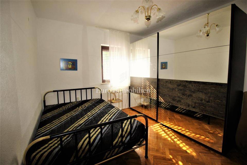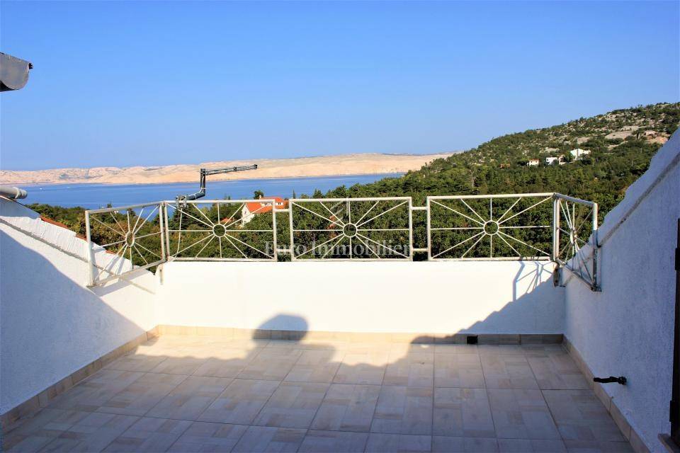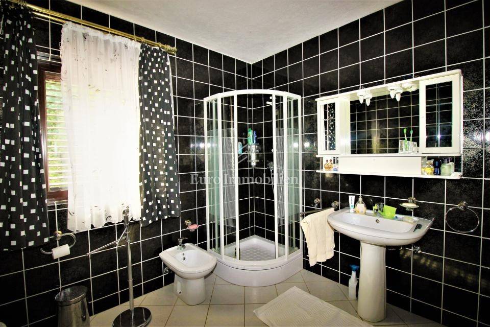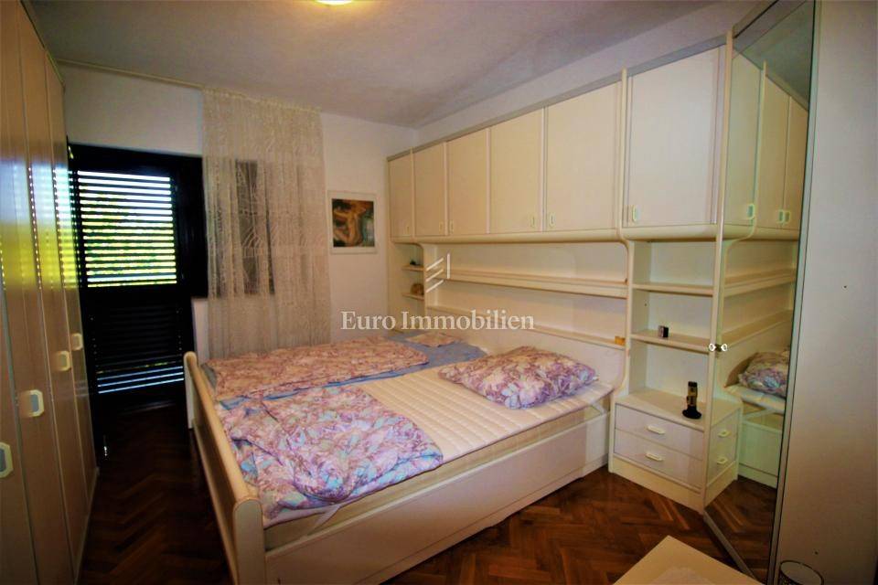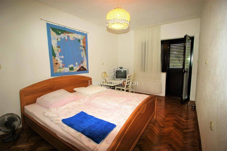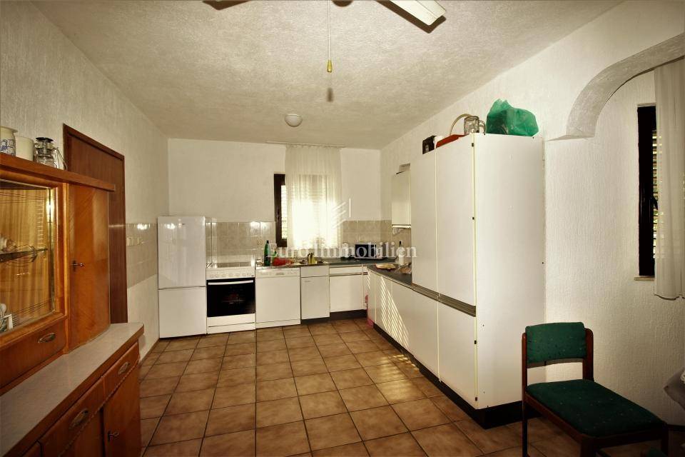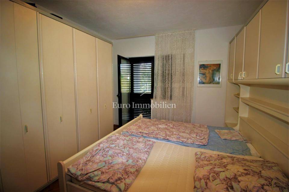 In the basement of the house there is a tavern, bathroom, laundry room and garage. On the first floor there is a kitchen with a dining room and a living room with an open concept, as well as a toilet and a terrace. An internal staircase leads to the first floor where there are three bedrooms, a bathroom and a balcony. In the attic are two bedrooms, bathroom and terrace with a beautiful sea view. The property in an oasis of greenery and peace is ideal for vacation, but also for truist rental.