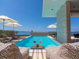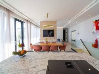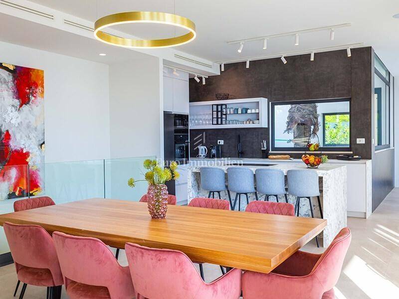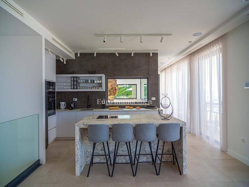 Die Villa ist sofort bezugsfertig, verfügt über einen Keller, ein Erdgeschoss und einen ersten Stock mit einer Innenfläche von 354 m2 und steht auf einem Grundstück von 1.003 m2. Der Keller besteht aus einem Billardraum, einem Fitnessraum, einer Küche und einem Esszimmer sowie einem Badezimmer. Im Erdgeschoss befindet sich eine Dreizimmerwohnung – drei Schlafzimmer, drei Badezimmer, Küche und Wohnzimmer, Terrasse mit Garten, Sauna und Ruhebereich, Abstellraum und Maschinenraum für den Pool. Die erste Etage besteht aus einem Schlafzimmer, einem Badezimmer, einem Eingangsbereich, einer Küche und einem Esszimmer, einem Wohnzimmer, einer Toilette, einer großzügigen Außenterrasse mit Kamin – Grill und einem Außenpool von 30 m2. Die Villa ist komplett ausgestattet Es ist nach Süden ausgerichtet und bietet einen schönen Blick auf das Meer, die Inseln und die Stadt.
