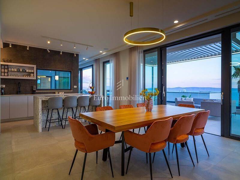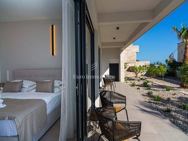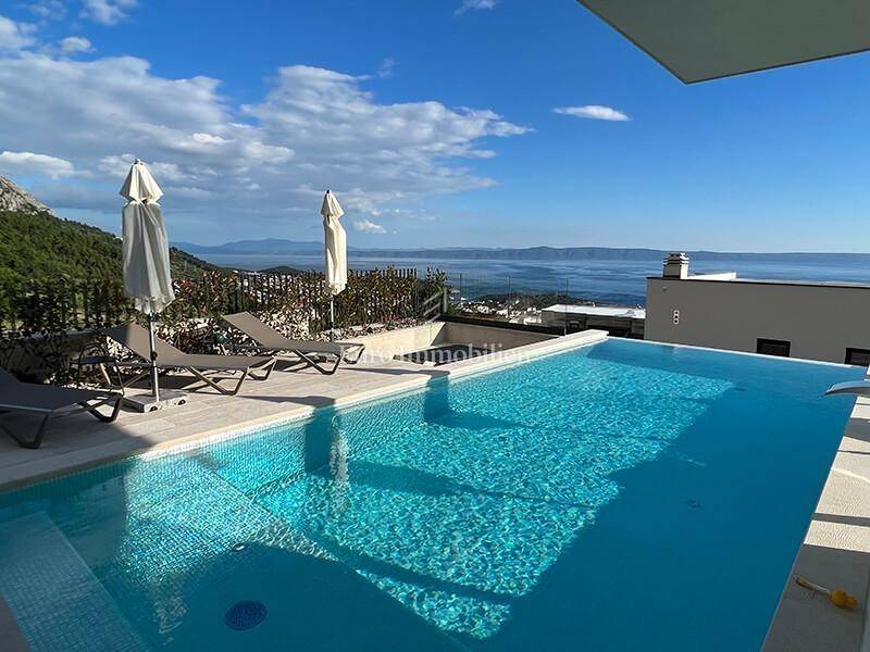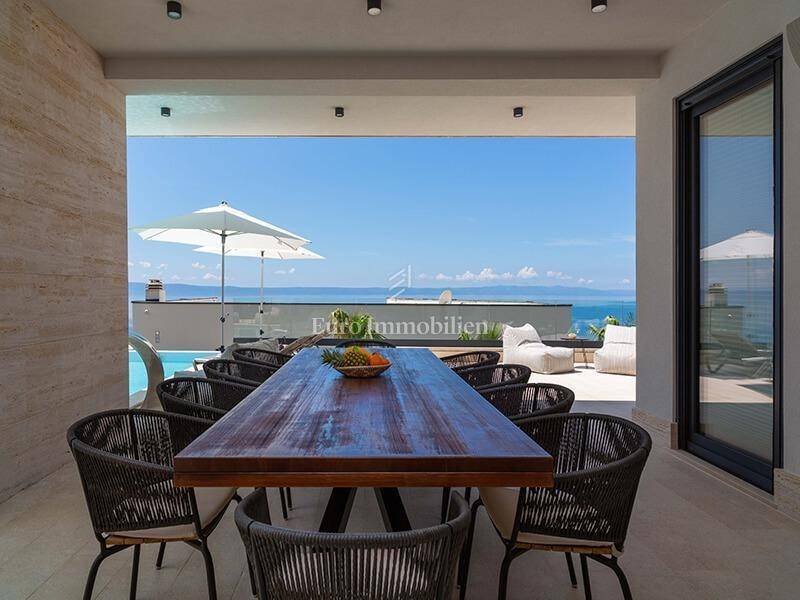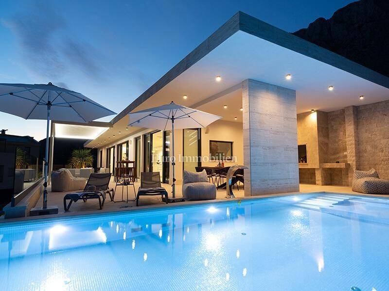 Zum Verkauf steht eine luxuriöse neue Villa mit Swimmingpool und wunderschönem Meerblick in Veliko Brdo oberhalb von Makarska.