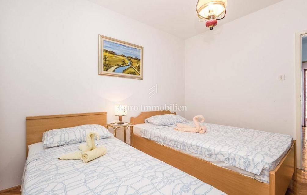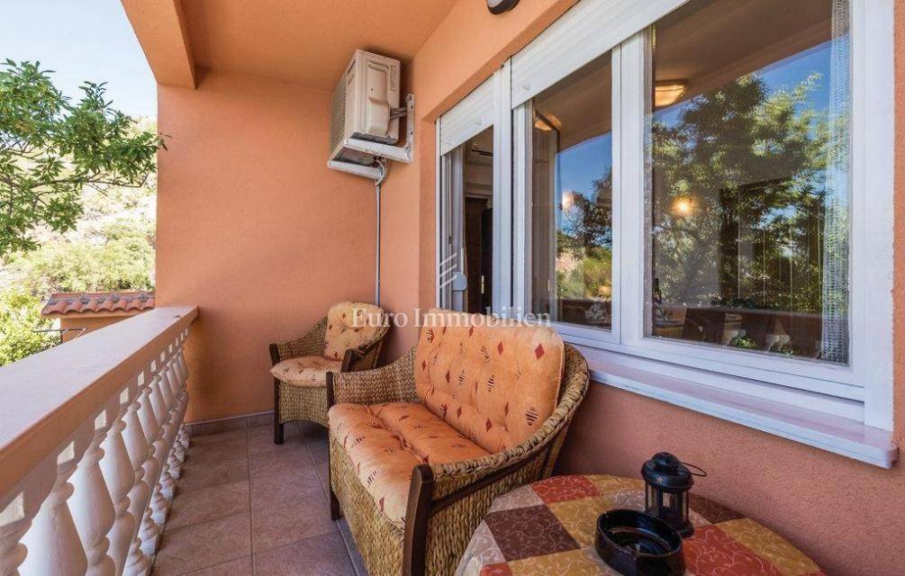 Direkt an der Küste steht ein Einfamilienhaus mit zwei Wohnungen zum Verkauf. Im Garten, der mit dem Meer verbunden ist, gibt es gepflasterte Terrassen, Sonnenliegen und Zugang zu einem kleinen Kiesstrand mit Liegeplatz für ein Boot. Das Haus in Funktion des Tourismus.