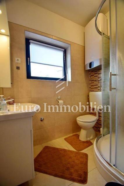 Das Haus hat eine Wohnfläche von 150 m2 und einen 577 m2 großen Garten. Es besteht aus Untergeschoss, Erdgeschoss und Obergeschoss sowie zwei Wohneinheiten. Im Untergeschoss gibt es eine Terrasse und eine Sommerküche. Im Erdgeschoss und im ersten Stock befinden sich zwei identische Wohnungen - sie bestehen aus einem Wohnzimmer, einer Küche und einem Esszimmer, zwei Schlafzimmern, einem Badezimmer und einer zusätzlichen Toilette und haben eine Fläche von ca. 60 m2. Die Wohnungen haben separate Eingänge. Es gibt einen Swimmingpool und mehrere Parkplätze im Garten. Die Immobilie wurde 2018 renoviert. Es befindet sich in ausgezeichneter Lage, ca. 500 m vom ersten Strand entfernt. Es wird seit mehreren Jahren erfolgreich für touristische Zwecke vermietet und ist daher möglicherweise eine großartige Investition.