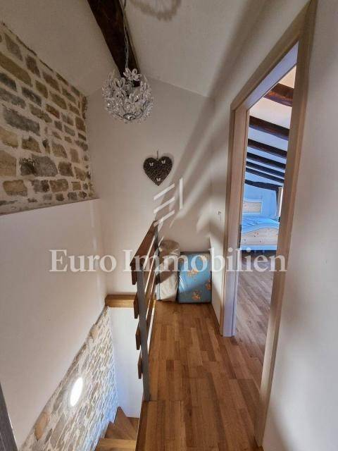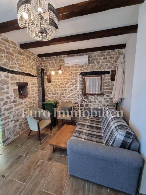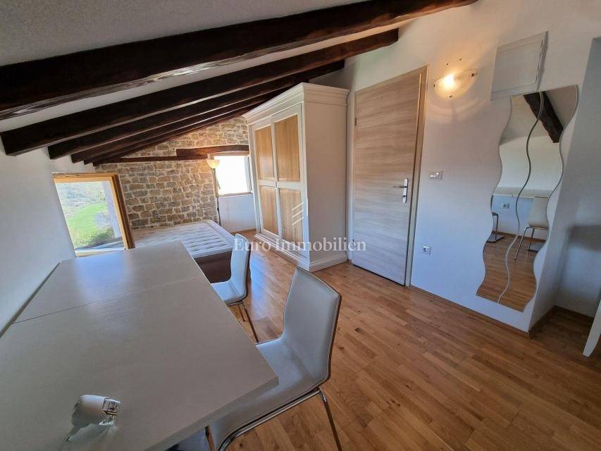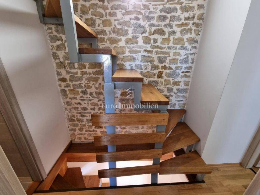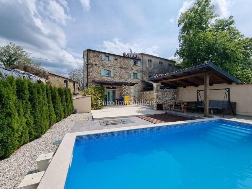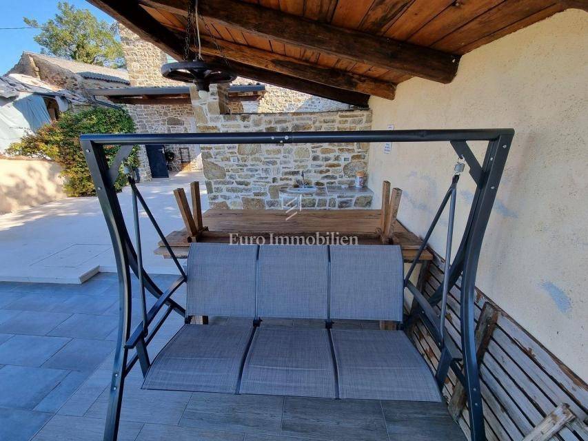 Ein wunderschönes renoviertes Steinhaus liegt auf einem Hügel, in einer kleinen istrianischen Stadt, gegenüber von Motovun. Es ist das letzte Haus in Folge. Die Lage ist sehr ruhig und einheimisch.