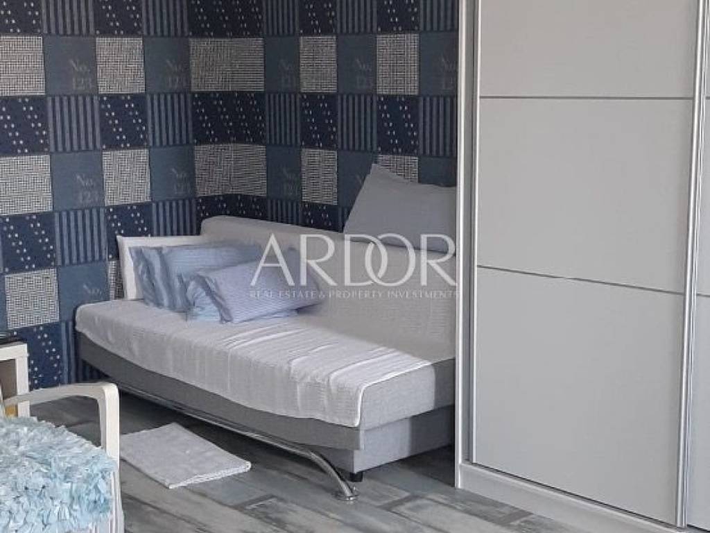 Sie verfügt über eine funktionale Raumaufteilung und besteht aus einem Schlafzimmer, einem Wohnzimmer, einer Küche, einem Badezimmer sowie einem zugehörigen Abstellraum. Die Wohnung wurde renoviert und ist gepflegt, mit einem zusätzlich ausgebauten Dachboden. Ein besonderes Highlight ist die Terrasse im Hof mit Meerblick sowie der offene Blick auf das Meer und den Berg Učka vom Obergeschoss aus.