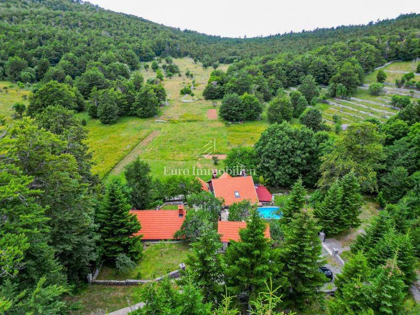 Zum Verkauf steht ein freistehendes Anwesen in einem Naturpark, direkt am Rand eines Nationalparks. Das Grundstück umfasst ein Haupthaus, zwei Nebengebäude, einen Pool sowie ein großes, landschaftlich gestaltetes Areal mit Steinmauern, Holz und mediterraner Bepflanzung.