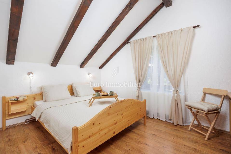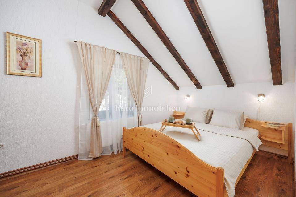 Das Haupthaus ist für die touristische Vermietung kategorisiert und bietet 4 Schlafzimmer, 2 Badezimmer, einen großzügigen Wohn- und Essbereich, eine zusätzliche Küche mit großem Esstisch sowie eine Wellnesszone mit Sauna.