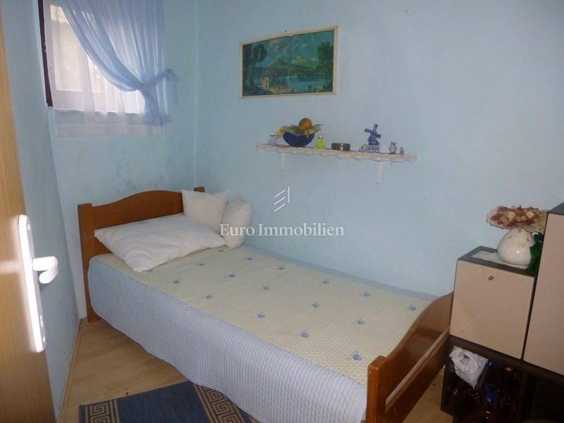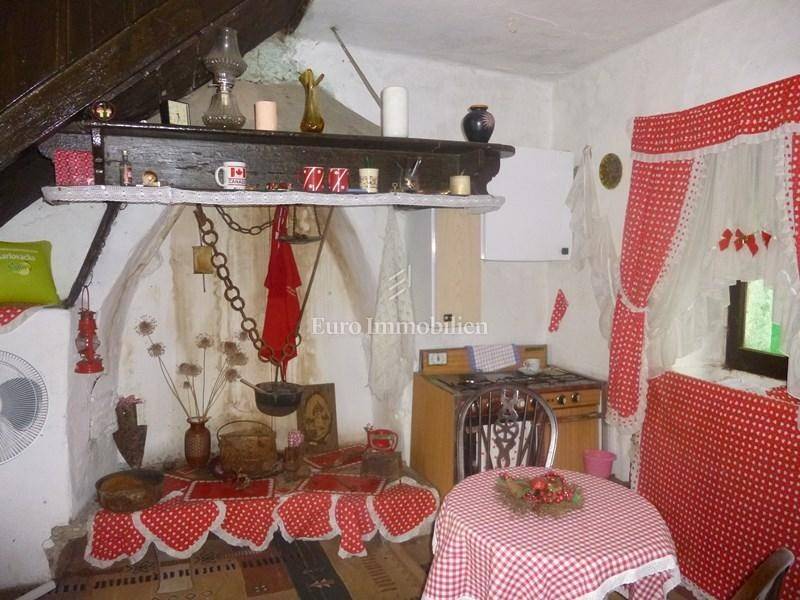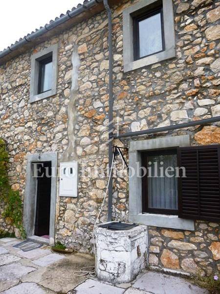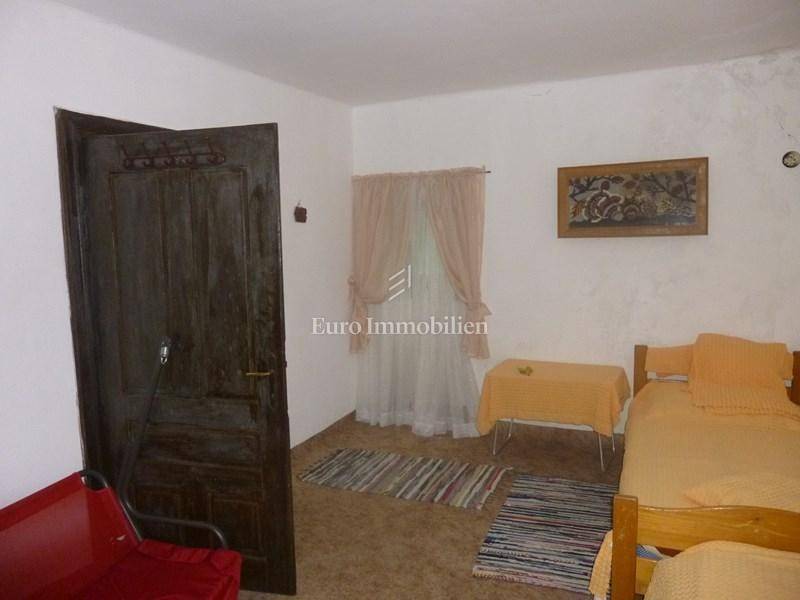 Insel Krk - Dobrinj. Altes Steinhaus von 190 m2 mit Garten Haus von 40 m2. Das Haus besteht aus drei Etagen. Im Erdgeschoss ist ein Keller, in der ersten Etage ist eine große Terrasse vor dem Haus, Küche und Schlafzimmer. Auf der zweiten Etage gibt es zwei Schlafzimmer. Das Haus wurde 2003 teilweise renoviert. Gartenhaus wird als Ein-Zimmer-Wohnung angeordnet. Das Haus hat einen Garten von 470 m2. Parkmöglichkeiten sind auf der Parzelle. Entfernung vom Meer: 2000 m.