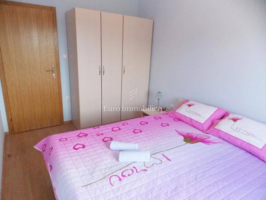 In a quiet location in Malinska, for sale is an apartment house with six furnished apartments and a sea view. The house was built in 2009 on a plot of 405 sqm and has a residential area of 300 sqm. All apartments have the same layout of the rooms, consisting of living room with kitchen and exit to a balcony of 6 sqm, bedroom and bathroom. The apartments are furnished, air-conditioned and have well established tourist rental. On the yard there is a parking space for six vehicles, covered area for gatherings and barbecue in stone. The house has video surveillance and provides the future owner with security. Great location 5 minutes drive from the beach and center of Malinska.