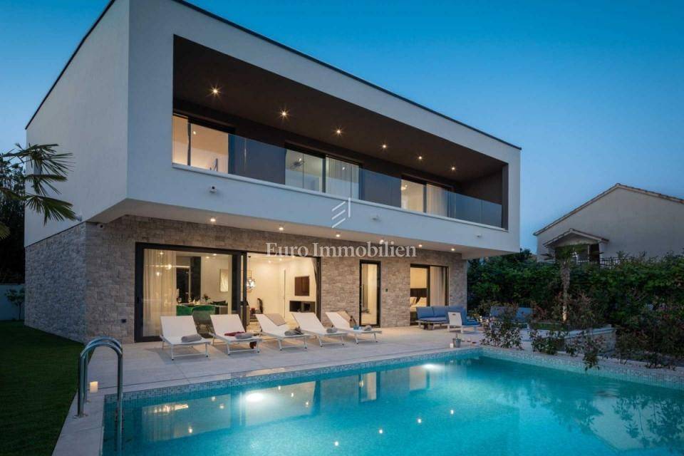 Zum Verkauf steht eine modern gebaute Villa mit Pool, gelegen in erster Reihe zum Meer in der Nähe von Rogoznica.