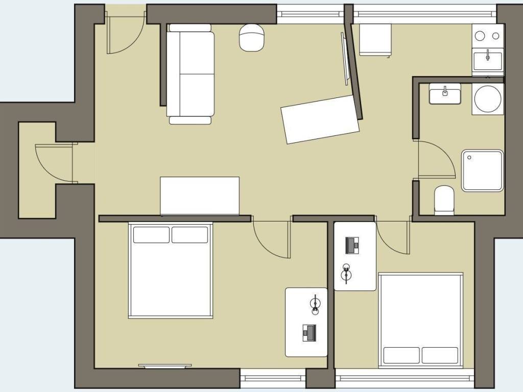 Die Wohnung erfordert keine großen Investitionen, da sie sich in ausgezeichnetem Zustand befindet und während der Vermietung eine Bewertung von 5/5 bei Airbnb und 9,8/10 bei Booking erhalten hat.