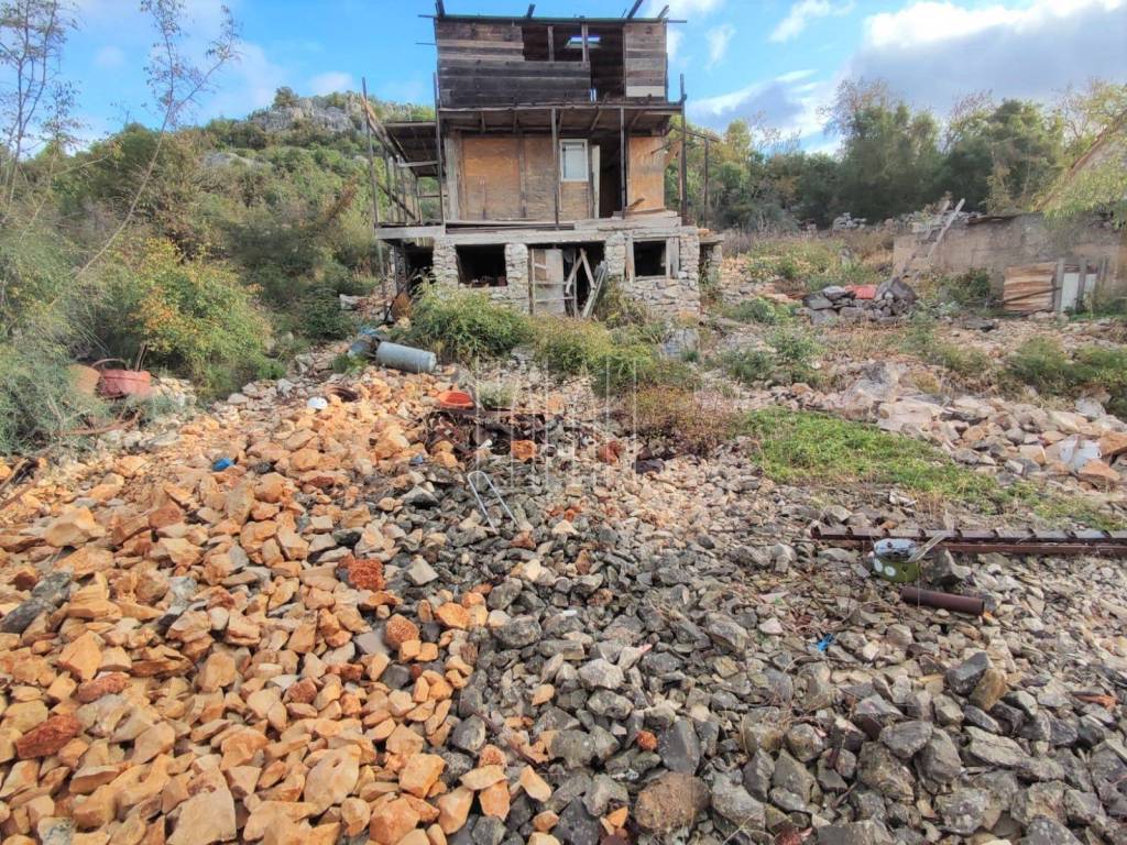 Das Gelände ist leicht abfallend, mit einer regelmäßigen, quadratischen Form, teilweise mit großen Steinen gefüllt, die zum Nivellieren oder als hochwertiges Baumaterial verwendet werden können.