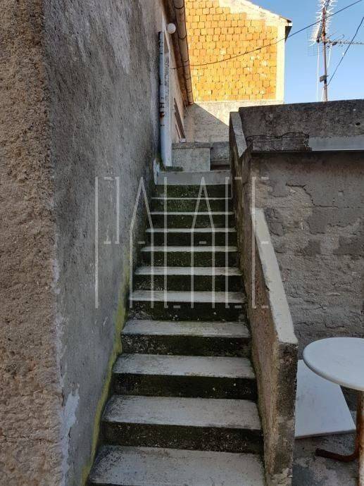 In erster Reihe am Meer befindet sich ein Haus mit zwei Wohnungen und einer Außentreppe, geeignet zur Renovierung.