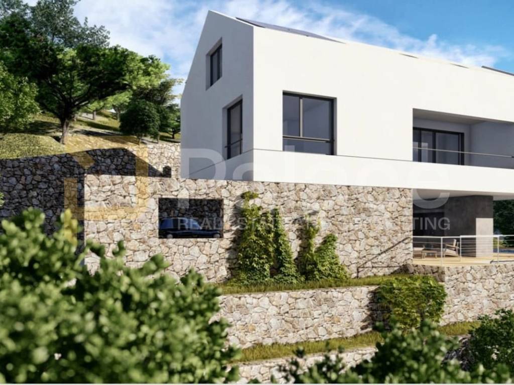 Das Gelände hat eine kaskadenförmige Form und wird zusammen mit einem Projekt für den Bau einer Villa verkauft.