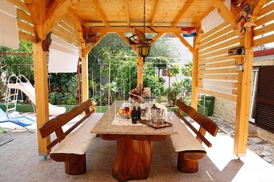 Zum Verkauf steht ein Appartementhaus mit einem enormen Geschäftspotenzial, einer Gesamtfläche von 980 m2 und einem 650 m2 großen Hinterhof in Vodice, das 9 Wohnungen, 12 Parkplätze, einen Garten, eine Essterrasse mit Grill, ein Außen-WC, einen Kinderspielplatz...