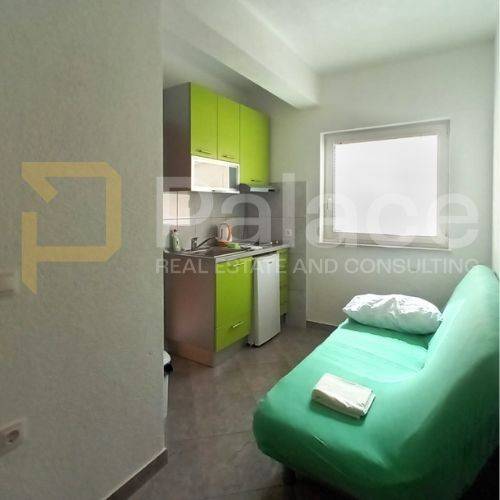 Im ersten Stock befinden sich drei Einzimmerapartments, jedes bestehend aus einem Schlafzimmer, einem Badezimmer mit WC und einer Küche mit Essbereich.