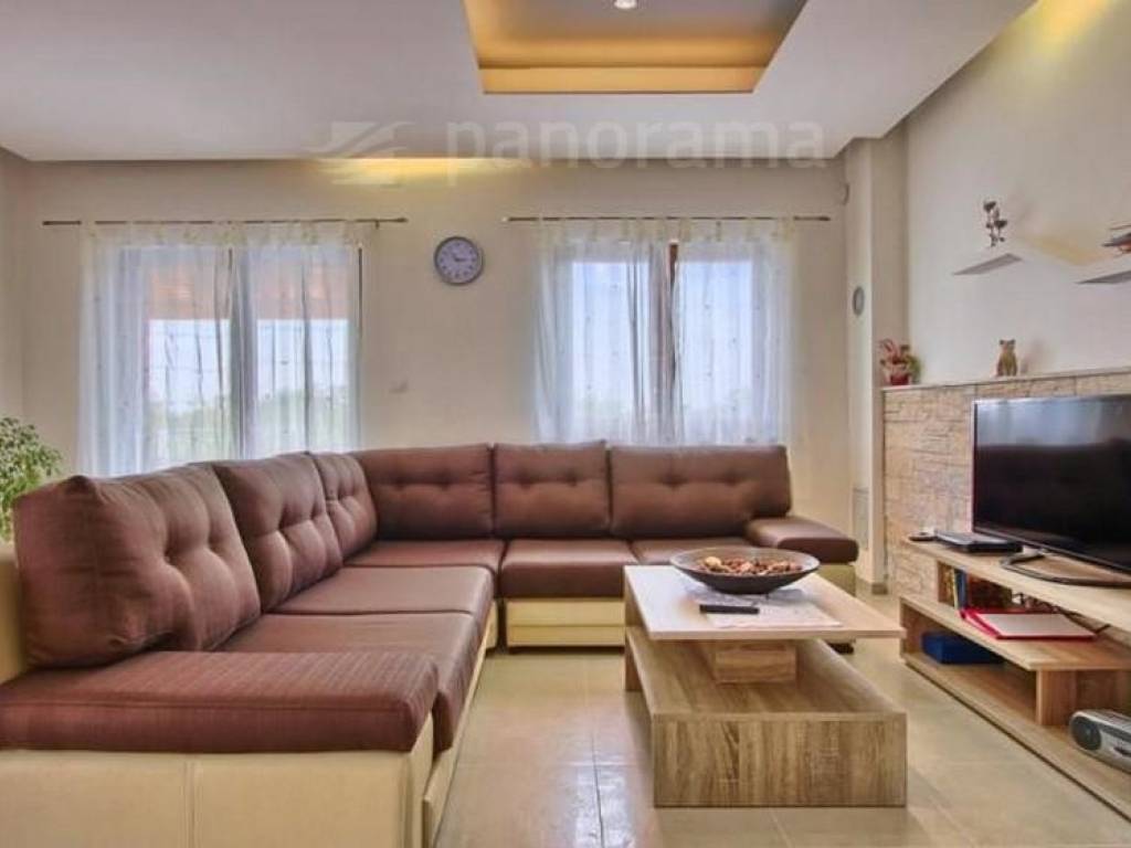 Im Erdgeschoss gibt es ein großes Wohnzimmer, eine Küche und ein Esszimmer, von denen sich die gesamte Länge der Wohnung auf einer großen überdachten Terrasse erstreckt, 1 Badezimmer, 1 Schlafzimmer mit Bad und Flur.
