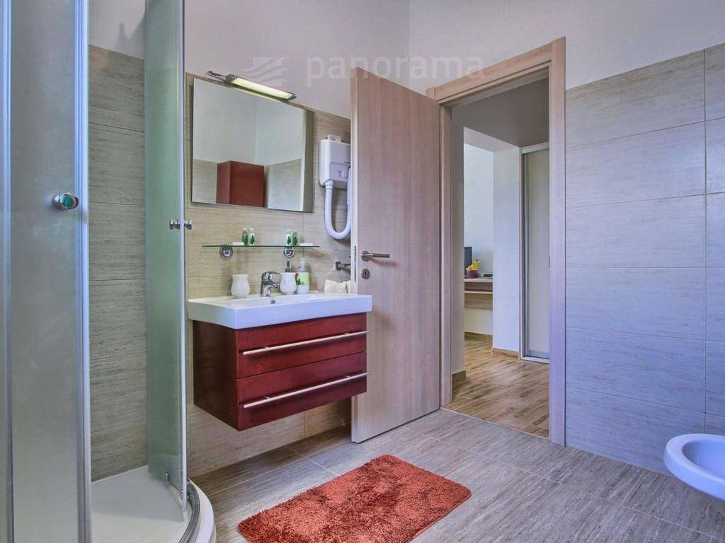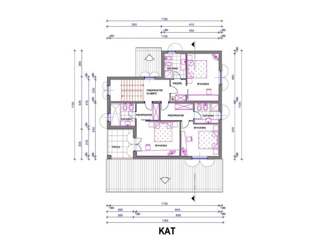 Im Obergeschoss befinden sich 3 Zimmer mit eigenem Bad, eines davon mit einer Terrasse, auf der Sie das Meer für schöne Tage sehen können. Im Untergeschoss befindet sich ein Raum zum Entspannen mit Fitness und einem Badezimmer.