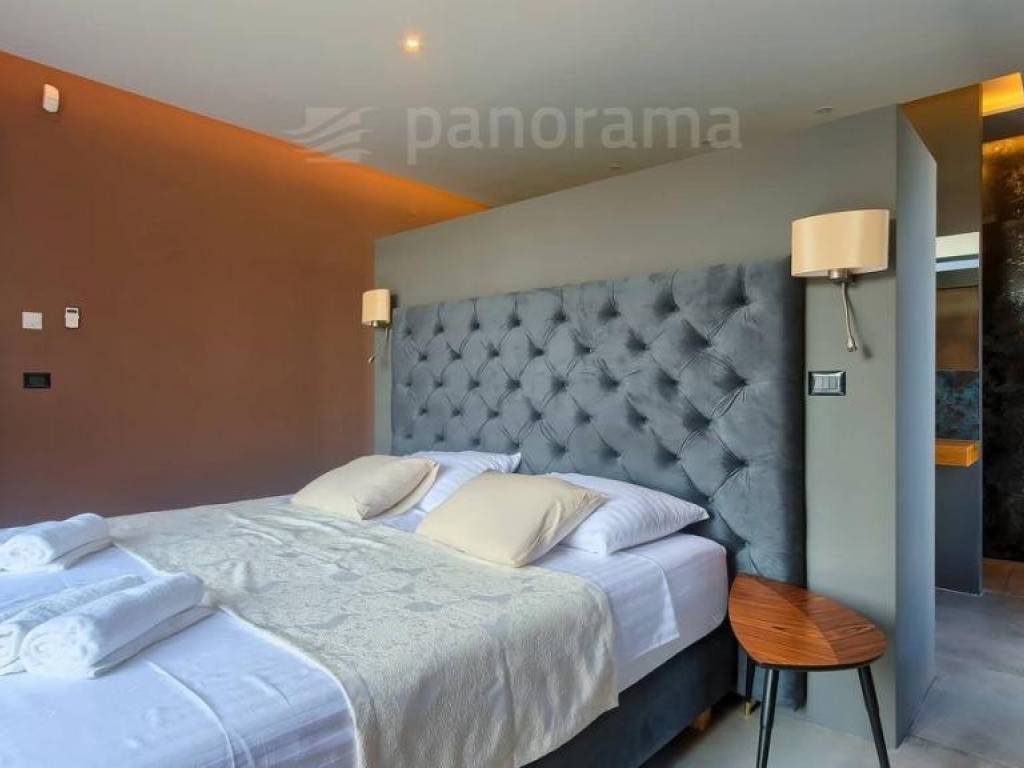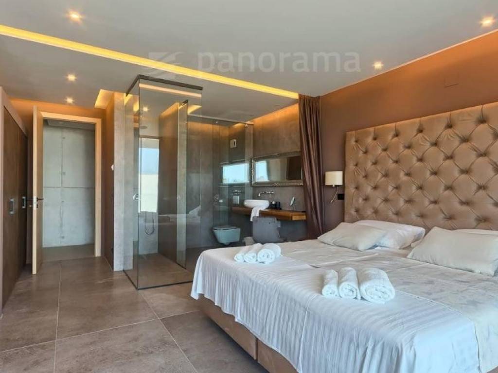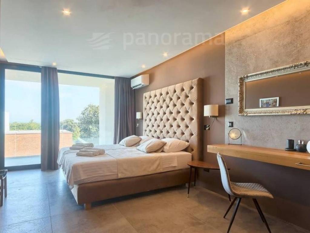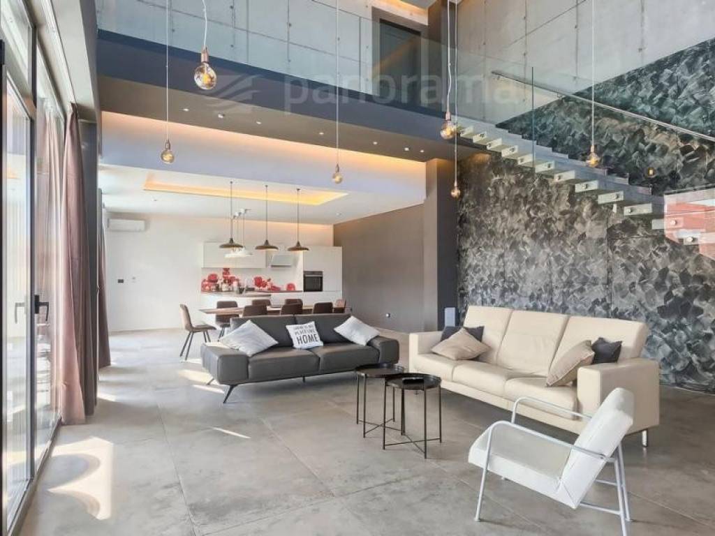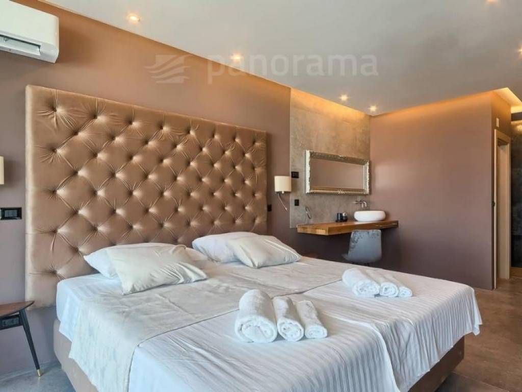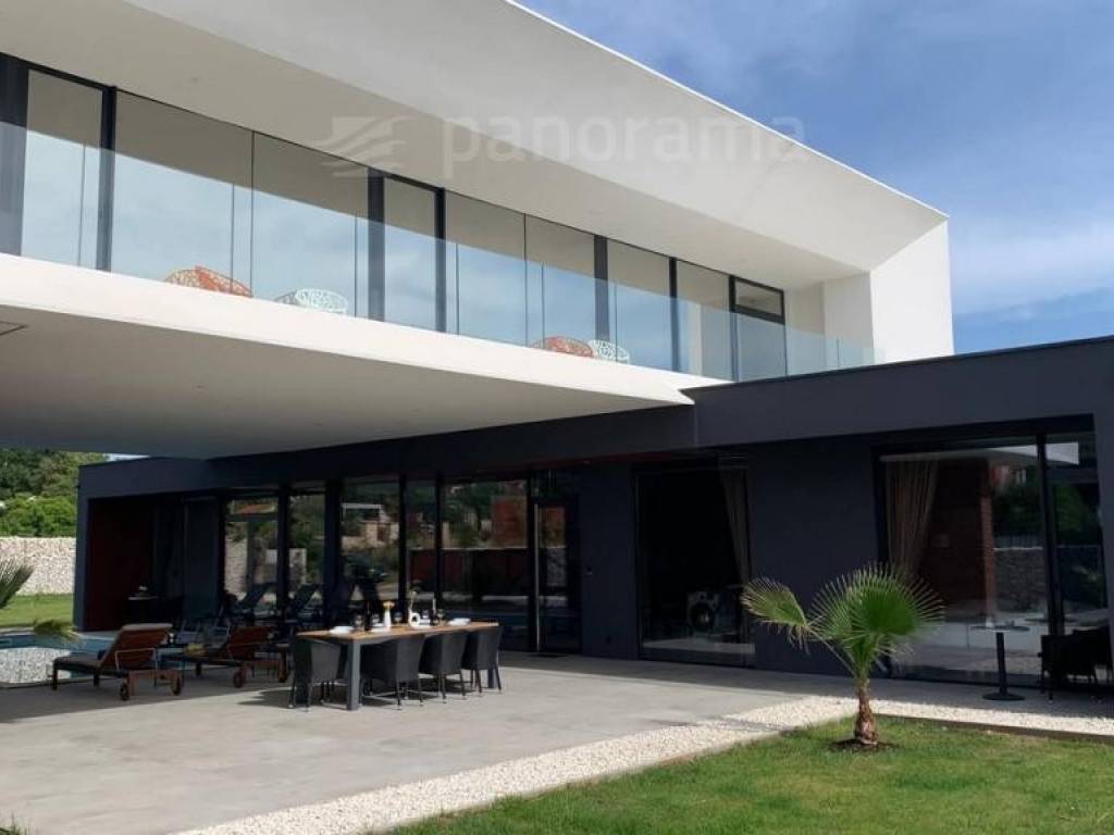 Im Erdgeschoss der Villa gibt es ein offenes Wohnzimmer mit Küche und Esszimmer und einen Freizeitbereich, alle mit Zugang zu einer beeindruckenden überdachten Terrasse, sowie 1 Schlafzimmer mit Bad und WC. Im Obergeschoss befinden sich 3 weitere Schlafzimmer mit eigenen Bädern und Zugang zur Terrasse mit wunderschönem Blick auf das Meer und die Bucht. Die Zimmer sind größer als der Durchschnitt, mit Glaswänden vom Boden bis zur Decke, gestaltet und eingerichtet. Im Inneren sticht die innenliegende Eingangshalle mit einer Höhe von 7,5 Metern hervor, die von einer luftigen Treppe umgeben ist, die in das erste Obergeschoss führt. Besonders attraktiv ist die Nähe des Pools selbst zum Innenraum - versteckt unter dem Obergeschoss, nur 5 Meter vom Wohn- und Esszimmer entfernt.