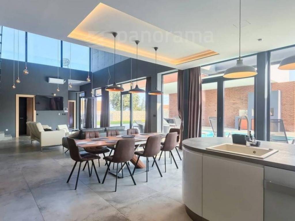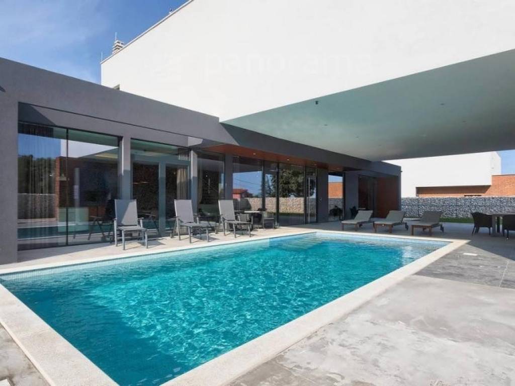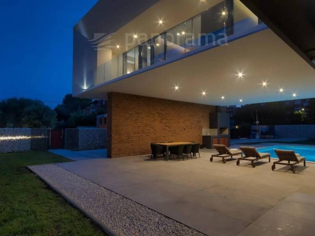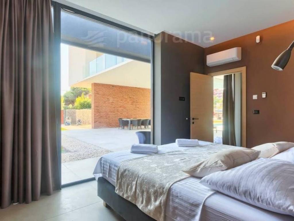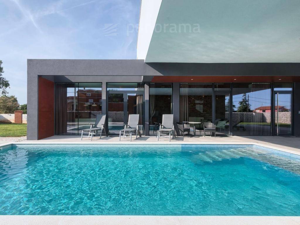 Diese außergewöhnliche Villa zeichnet sich durch einen unvergesslichen architektonischen Ausdruck aus, der nicht unbemerkt bleiben kann. Es ist inspiriert von dem in der Welt der Architektur berühmten Pariser Bürogebäude Grande Arche, das sich durch einen großen Bogen auszeichnet, der die beiden Gebäude verbindet. Es befindet sich in unmittelbarer Nähe zum Meer und befindet sich an der südlichsten Spitze Istriens, in dem kleinen Fischerdorf Ližnjan, das mit dem Touristenzentrum Medulin verbunden ist. Die unmittelbare Nähe der größten Stadt Istriens - Pula gibt Ihrem Urlaub eine unerschöpfliche Quelle zusätzlicher Inhalte. Die Villa ist komplett neu und wurde Mitte 2021 fertiggestellt.