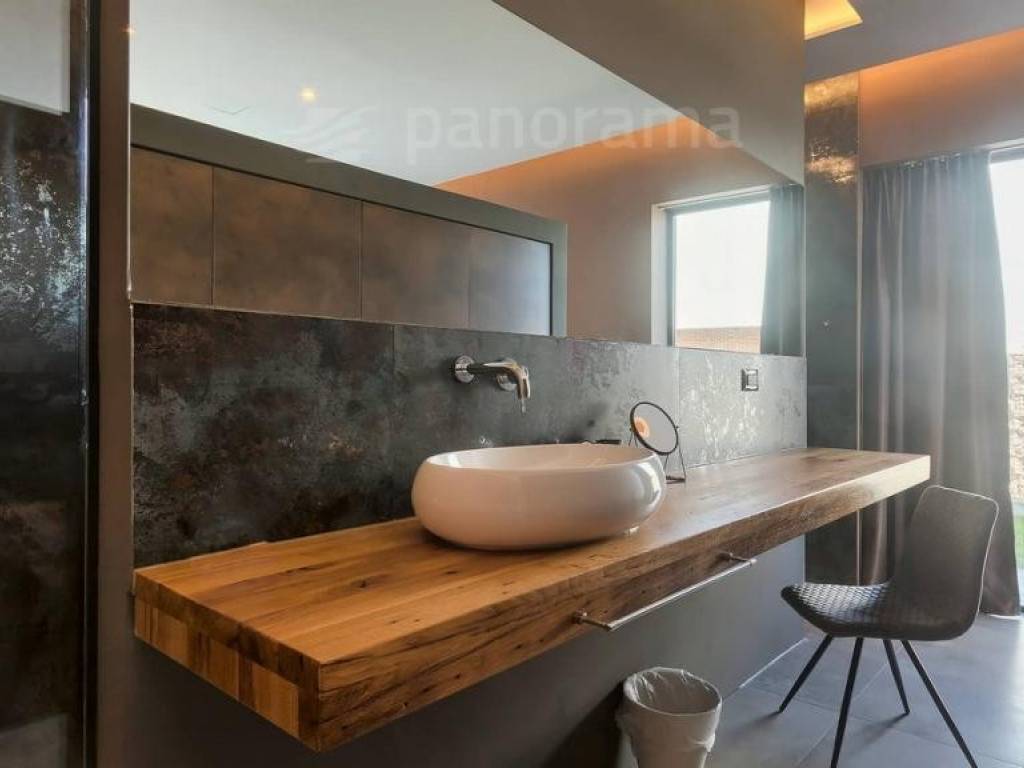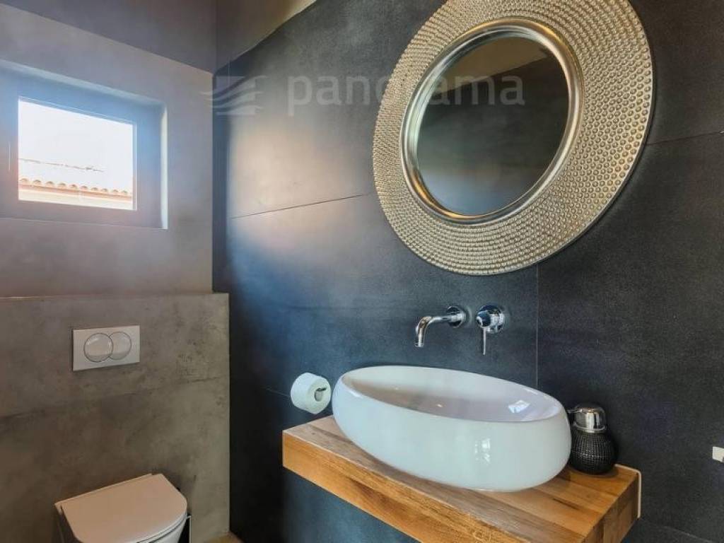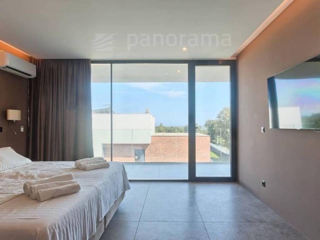 Die Terrassen erstrecken sich über die gesamte Breite des Hauses und darunter befindet sich ein Swimmingpool, der von einer Liegewiese und einer Grünfläche begrenzt wird. Der Pool hat eine Fläche von 43 m2 und wird von einer 15-kW-Inverter-Wärmepumpe + Sonnenkollektoren auf dem Dach des Gebäudes beheizt. Es verfügt über die modernste Desinfektion des Zuges über Salz, erzeugt natürliches Chlor durch Elektrolyse und verfügt über einen zusätzlichen UV-Sterilisator.