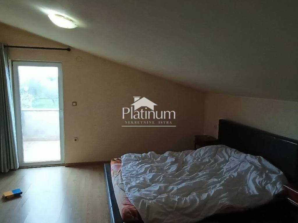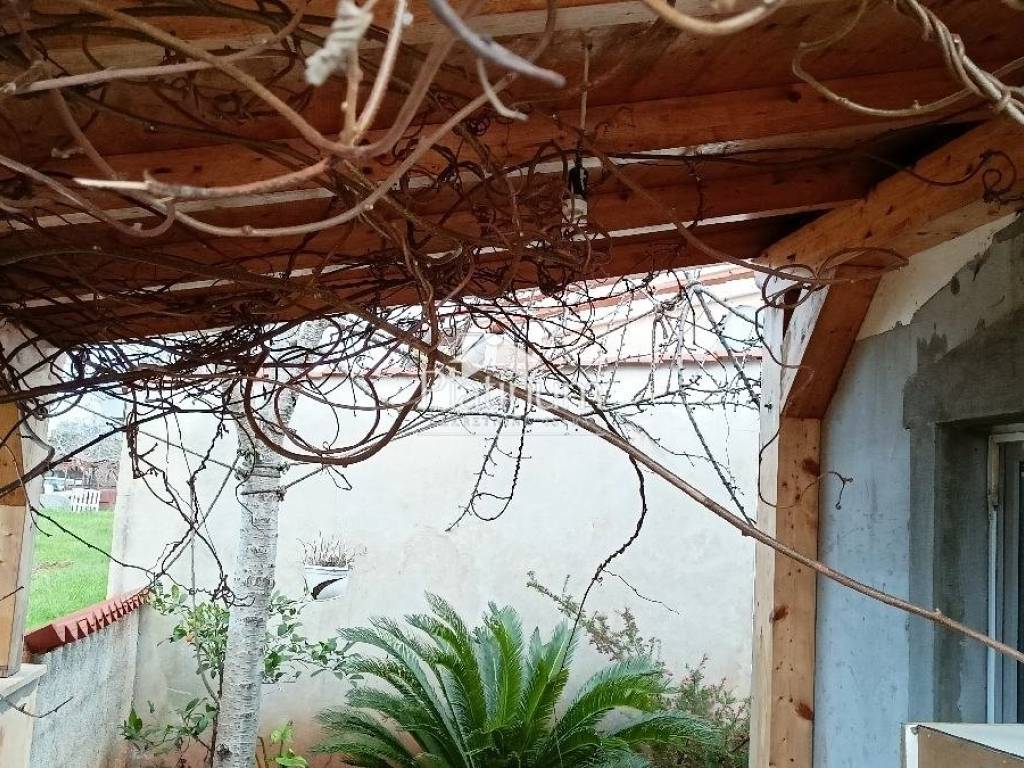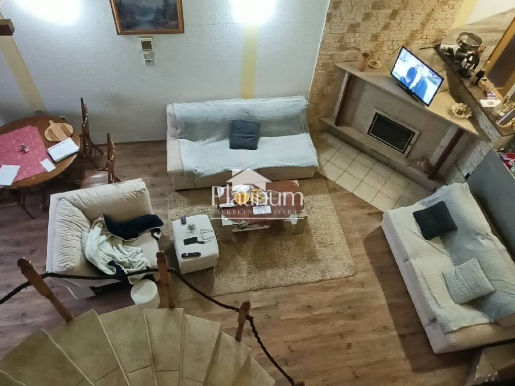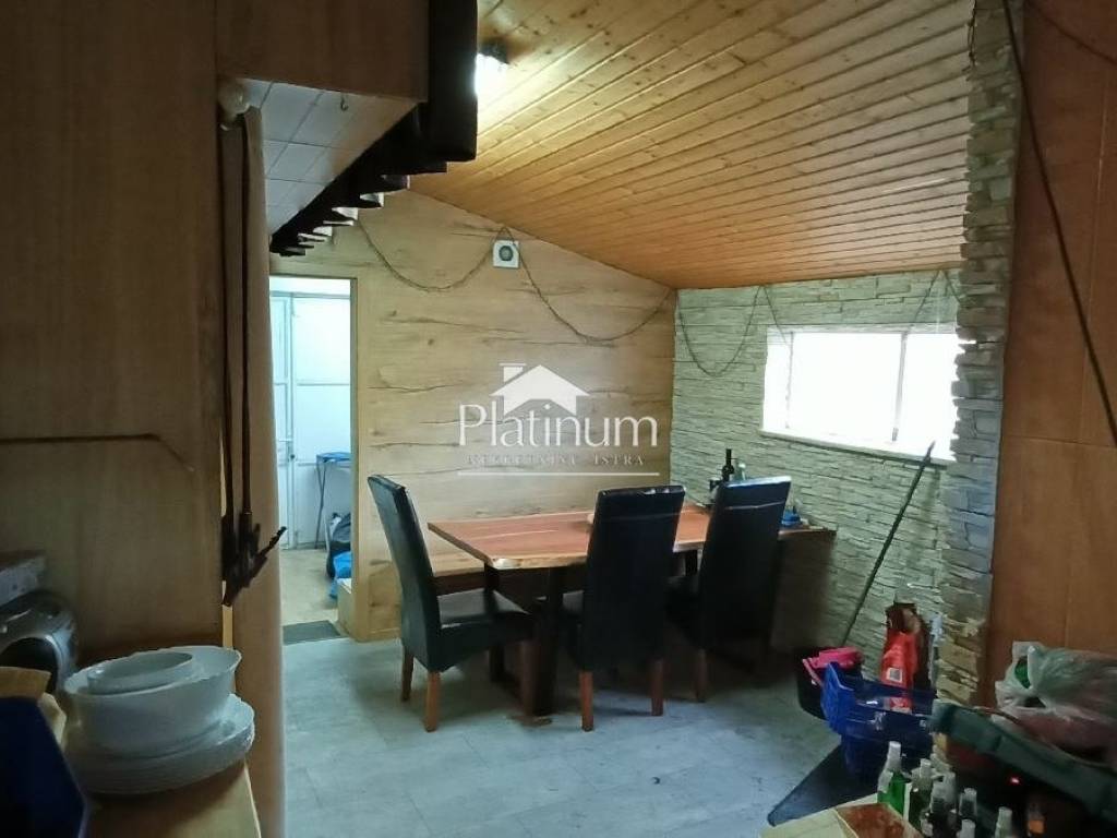 In Šikići, unweit von Pula, steht ein einstöckiges Haus mit einem Mansardengrundriss von 158 m2 zum Verkauf, das aus einer Eingangshalle und einem offenen Raum bestehend aus einem Wohnzimmer, einem Essbereich und einer Küche besteht Ein Teil und im anderen Teil drei Schlafzimmer und ein Badezimmer. Die Küche ist durch eine Tür mit der Taverne verbunden, wo sich ein Kamin, eine Speisekammer und eine Toilette befinden. In einem Teil des Raumes gibt es außerdem eine automatisierte Zentralheizung, die an den Kamin im Wohnzimmer angeschlossen ist (Kombinationsheizung mit Thermostat). Vom Wohnzimmer aus steigen wir die Wendeltreppe zur Galeri