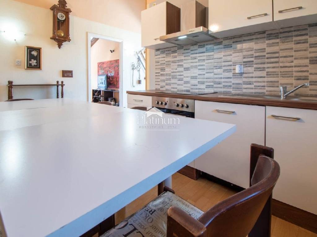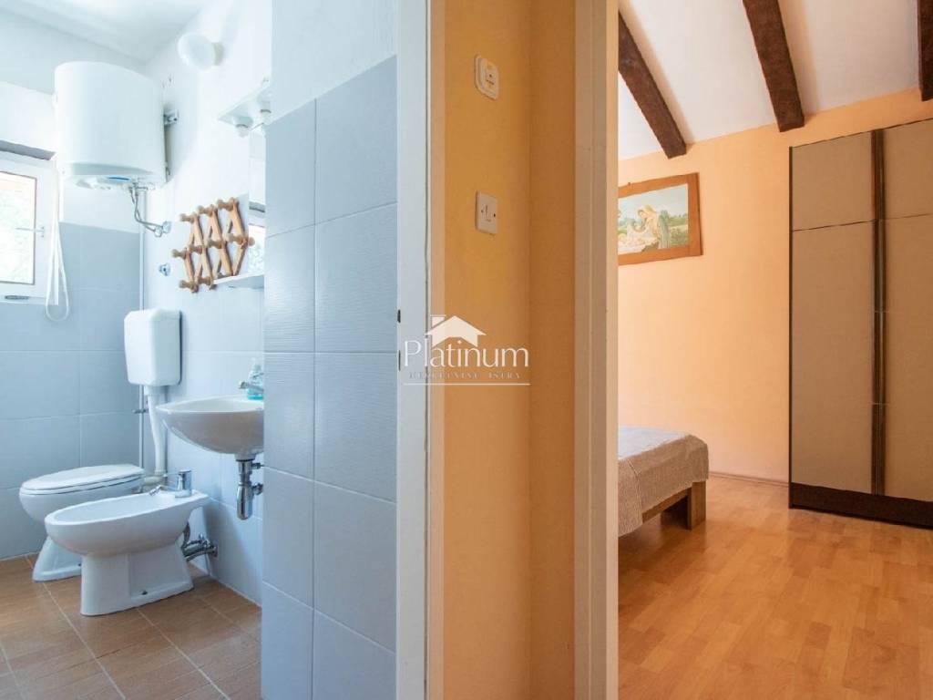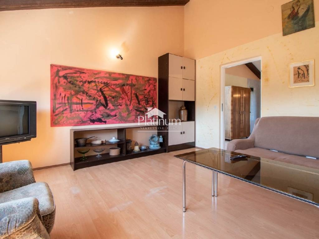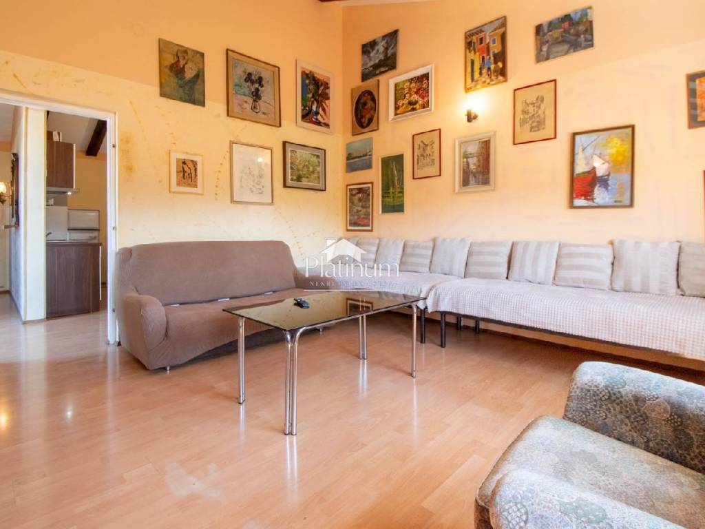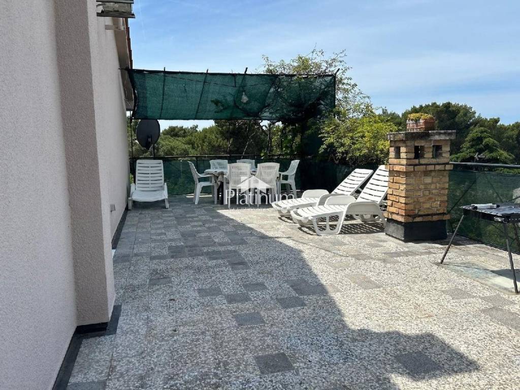 Wohnung im Stadtteil Valkane, Pula, im zweiten Stock, Privathaus mit drei mehrstöckigen Wohnungen mit angeschlossenem Garten. Der Zugang zu den Wohnungen erfolgt über eine gemeinsame Außentreppe. Die Wohnung hat eine Fläche von 85 m2. Die Terrasse ist 45 m2 groß. Auf Wunsch des Käufers kann die große Terrasse in eine zusätzliche neue Wohnung umgewandelt oder die Fläche der bestehenden Wohnung vergrößert werden. Die Wohnung verfügt über eine Dachschräge in einer Höhe von 4,5 Metern, so dass auf Wunsch des Käufers eine Hängegalerie eingebaut werden kann, um noch mehr Platz zu schaffen. Der grüne Garten, der eingezäunt werden kann, ist 100m2 groß und bietet die Möglichkeit eines Parkplatzes für ein Auto. Das Haus wurde 1972 erbaut und 2004 teilweise renoviert. Im Jahr 2010 wurde ein neues Dach gebaut und neue Dachrinnen eingebaut. Die Fassade wurde 2015 renoviert. Es verfügt über einen Telefonanschluss, einen Niederspannungsanschluss von 9,2 kW, eine Klimaanlage von 5,2 kW, einen Anschluss an Stadtgas, einen Anschluss an die städtische Kanalisation und einen Anschluss an Stadtwasser. Es gibt keinen Meerblick, da sich vor dem Meer ein Pinienwald befindet. Die schönsten Strände von Pula sind 200 m entfernt. 300 m entfernt befindet sich das größte Einkaufszentrum Istriens, Max City, und die neuen olympischen Schwimmbäder. Reines Eigentum