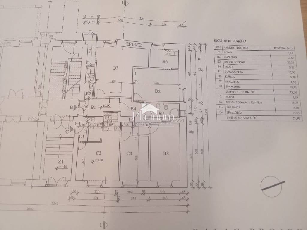 Eine Wohnung zum Verkauf in der Nähe des Zentrums von Pula, nur 300 m vom Markt entfernt. Wohnung mit einer Größe von 104 m2, aufgeteilt in zwei Wohneinheiten, die derzeit als drei separate Einheiten vermietet werden. Die Wohnung besteht aus drei Wohneinheiten, die in ihren ursprünglichen Zustand zu einer großen Wohnung umgewandelt werden können. Drei Flure, drei Badezimmer, zwei Wohnzimmer, ein Esszimmer, zwei Schlafzimmer, ein drittes Zimmer auf der Galerie, drei Küchen, ein Abstellraum von 10,5 m2. Für alle Informationen rufen Sie 00385 91 924 9486 an