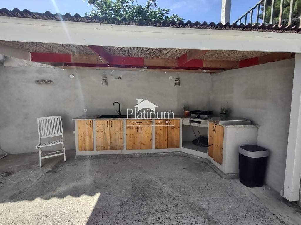 In Pula, in ruhiger Lage, steht dieses einstöckige Haus mit Nebengebäude zum Verkauf. Das Haus besteht aus einer Küche mit Essbereich, Wohnzimmer, Schlafzimmer, Waschküche, Badezimmer, überdachtem Abstellraum und Terrasse. Im zweiten Teil gibt es ein Wohnzimmer mit Küche, Schlafzimmer und Badezimmer. Privater Parkplatz für zwei Autos. Klimaanlage zum Heize